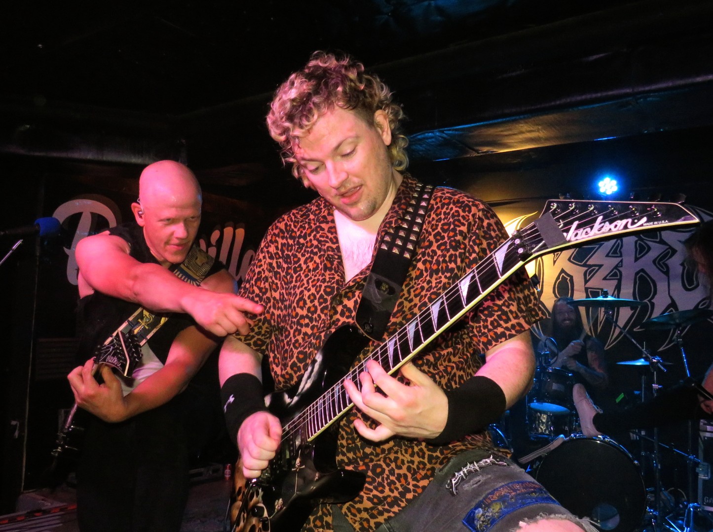 Por suerte solo habían tocado «Heart of Lies» posteriormente, abriendo el concierto, de su último disco de estudio «Play to Win». Una pena perdermelo, pero sabía que tendría ocasión de gozar de mucho shreding y ochenterísmo esa noche en otros temas de ese mismo disco, ya que la banda parece haber enterrado sus inicios más agresivos e incluso épicos. De hecho, continuaron con sus dos últimos singles, «Deathwish», con el que cuajó la comunión entre Pete Klassen y Dan Cleary con todos los allí presentes, y «Strange Love», de difícil digestión para mi gusto. Entre ambos sonó «Former Glory», muy coreada, donde Brown y Fallon empezaban a dar muestra de su sobrada soltura, y Striker como conjunto, a argumentar como plantarse ante una audiencia que quiere disfrutar del Hard’N’Heavy tradicional sin rozar ni un segundo la parodia.