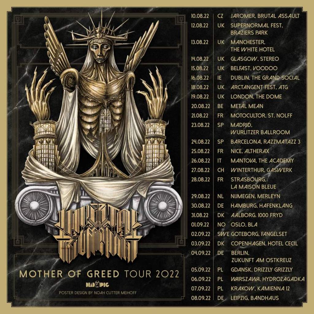 Incrédulos nos íbamos acercando el pasado martes 23 de agosto a la Sala Wurlitzer. Nada menos que los Imperial Triumphant, dentro de su gira “Mother of Greed Tour”, anunciaban su comparecencia frente al público de Madrid. Que vengan a vernos, es un acontecimiento en sí. La última vez fue en noviembre de 2019.