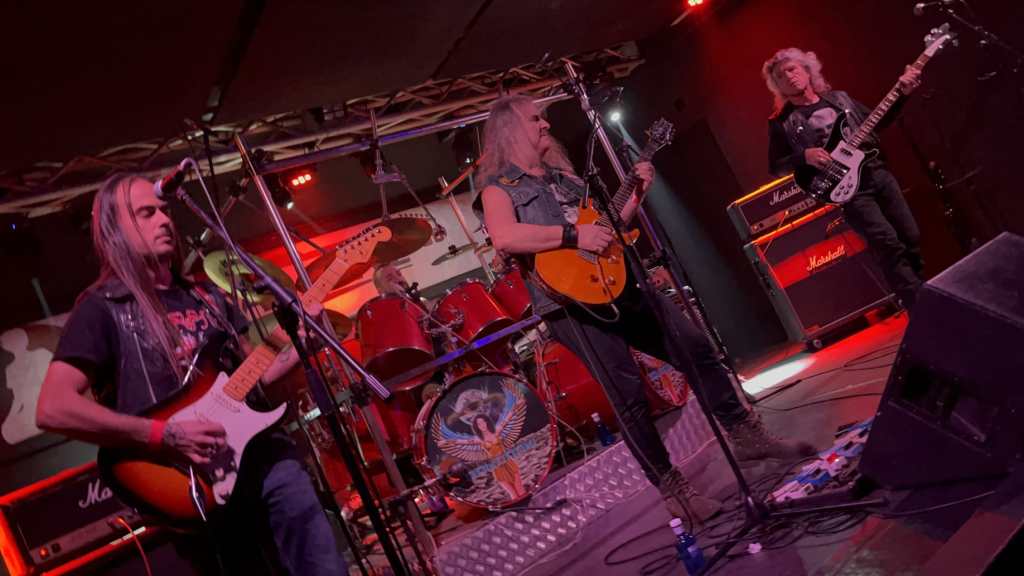 Sobre las once abría la sala. Un recinto con un buen escenario, de forma cuadrada, una magnífica visibilidad, y con una capacidad superior a 200 personas bastante comoda. A las once y media hacían acto de presencia los míticos ZARPA. Con Vicente Feijoó acompañado por su escudero Vicente Romero «Hueso» al bajo. Completaban la formación Marcos Sanz, un joven guitarrista alumno de Feijoó que está dando sus primeros pasos a nivel profesional con su mentor, y Miquel Alejandro, batería veterano de la escena valenciana con una calidad sobresaliente. De nuevo nos sorprendian con una gran compenetración, sobre todo con Feijoó y Hueso alternadose en la voces de vez en cuando, y con el bajista ofreciendo su habitual locura encima del escenario. Un tipo que no para de moverse y tener sus peleas vocales con el público, mientras Vicente, más sobrio, tocaba y cantaba de una forma tan natural que a veces me cuesta pensar que tiene más de 60 años. Marcos en la guitarra poco a poco va soltandose más y ha evolucionado bastante desde ese primer concierto que le vimos en la desaparecida Paberse matao de Sedavi y Miquel, tras los parches, demostraba que con él la banda mantiene un potencial sonoro en ritmo y pegada brutal, dándole a ZARPA y sonido potente que endurece mucho los temas, tengan el tiempo que tengan. Y por este motivo sorprende que un repertorio basado en toda su carrera, en temas de su primera etapa ochentera sonara tan actual, y no hayan diferencia de años entre ellas.