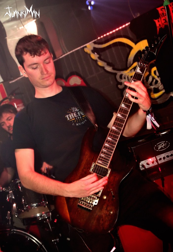 miembro de Mordhida del que no he dicho nada hasta ahora. Estamos en el ecuador del “acto” y si alguien ha sostenido con firmeza la base rítmica de la banda es Guille “Guillermo Rodriguez” al bajo de “no se cuantas” cuerdas (sí, sí lo sé son 6) y que andaba bien pachucho aguantando el temporal como un campeón. Gracias por estar ahí y darlo todo a pesar de las circunstancias. Es una simple muestra de la profesionalidad de esta gente.