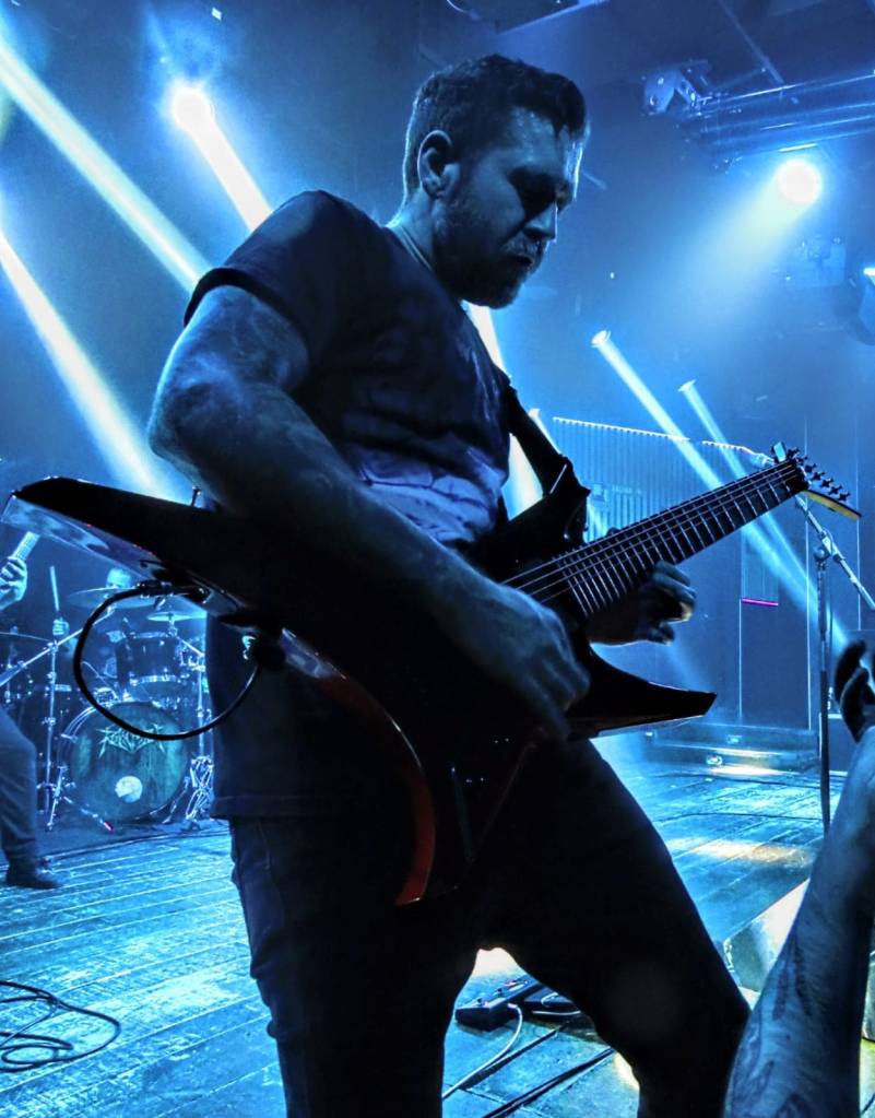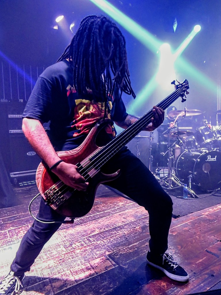 Tras el breve cambio de bártulos, milimetrado, comenzaba puntual el show de los atlanteños ALLUVIAL, también por primera vez en Madrid. Banda menos atractiva del cartel a priori, para mí, al situarse en esa compleja frontera deathcoreta, pero que me sorprendió gratamente. Innegable punch que nos cautivó tanto a los más puretas como a los más modernos, unos 100 en ese momento. El incansable Kevin Muller, es un portento vocal y ha aportado un caracter impresionante a esta formación, y Wes Hauch, a pesar de tener que tocar sentado por una lesión, impartió una clase magistral entre djents y solos de ejecución perfecta. 6 temitas de su potente «Sarcoma» que menearon ligeramente el pit, que sonaron impolutos y con los que nos ganaron para su causa a los más reacios. Píldora *core para el cuerpo rica rica.