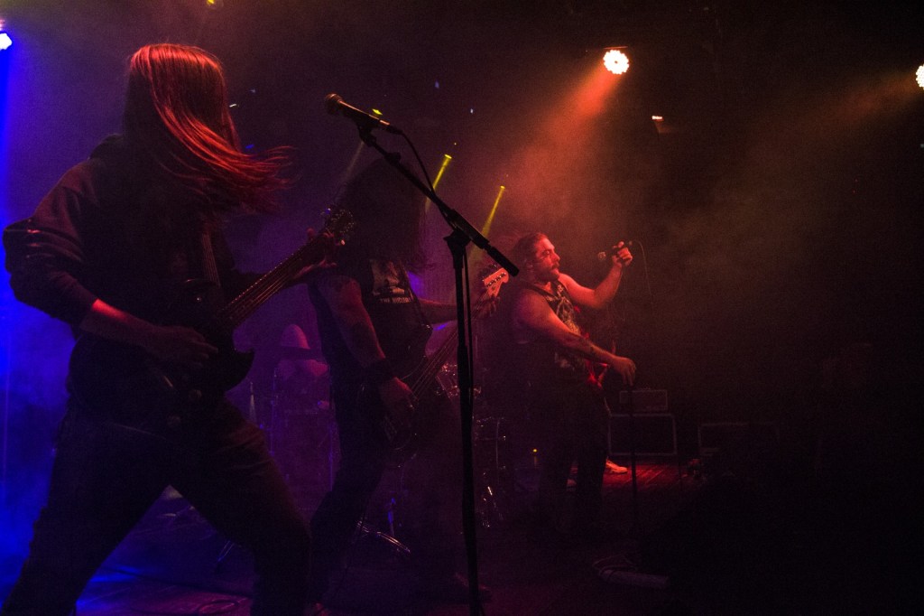 Tras otra breve pausa, seguíamos sin salirnos un dedo de la escaleta, llegaba uno de los platos fuertes de la noche, celebrando sus 25 años, los de Louisiana, GOATWHORE. Tremendo bolazo que se marcaron, a diferencia de su discreto paso en anteriores ocasiones por Madrid. Capitaneados por el carismático vocalista LB Folgoust y el mitico Sammy Duet, quién acaparó todas las miradas, derrocharon suciedad con su death oscurecido y macarra. «The Bestowal of Abomination» sonó gigante y arrolladora, tiñendo la noche con el poco black que iba a sonar en este evento. Para ser seguida del único contratiempo, y es que en mitad de la punkarra «Fbs» se caía la corriente de la sala. Incidencia resuelta rápidamente y que el cazallero Folgoust atribuyó a cosa del demonio, jeje. Continuaron como si nada repasando su discografía, obviando la primera etapa y desatando la locura de las 200 almas allí congregadas con «Apocalyptic Havok», «Nihil» y sobre todo con «Death From Above» en la que el propio Folgoust bajó a batirse en el pit, para cerrar con su ya clásica «Baring Teeth for Revolt» y arrancarnos una sonora ovación al grito coreado de «Caaaabrapuutaaa». Bandaza que fue un privilegio ver y gozar, y bolazo producto de mucha experiencia ganada por el arte de ir contracorriente en una ciudad de sonido tan instaurado como NOLA. Punto de inflexión de una velada que estaba siendo perfecta, pero en la que aún quedaba lo mejor.