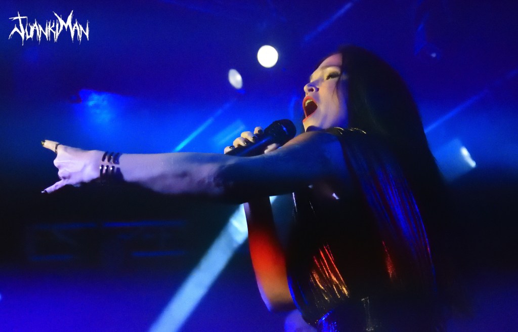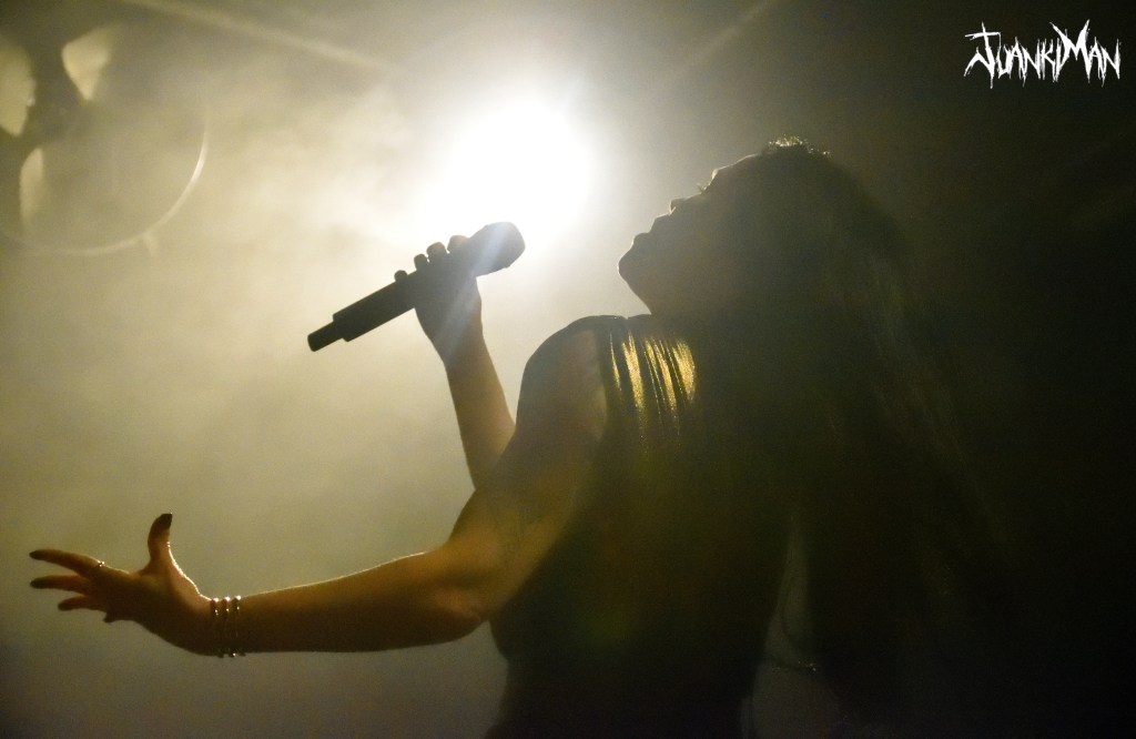 El plantel de esta noche repetía el que vino a Madrid hace casi 3 años. Era indudablemente una noche de diosas, pero como en toda mitología pagana, siempre hay diosas mayores y menores. Nadie puede, a día de hoy, arrebatarle la escritura de propiedad del Olimpo a la diosa entre diosas, Tarja. El escenario se vestía de oro y cuero, a la velocidad de la luz, para recibir a la dama del Metal Sinfónico.
