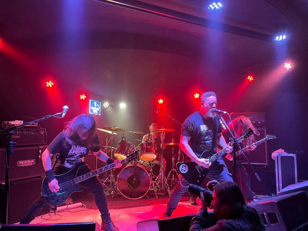 Empezarían con “Odyssey In Time” de su último larga duración (y mi favorito) “Complete Downfall”, que enlazarían de seguido con “Black Moon”, uno de los dos temas que contenía el E.P. “Voice Of The Soul…” del 2015, con el que Oscar Del Val (guitarra y voces), trajo de nuevo a la palestra a la banda tras dos décadas de parón. Volverían a su gran “Complete Downfall” del 2020 para tocar “The Origin”, justo antes de mi primera sorpresa de la noche, puesto que tocaron “Lobotomy”, canción incluida en un E.P. de dos temas editado el pasado año, del que no tenía conocimiento, y que gracias al grupo ya está junto al resto de sus compañeros en la estantería de mi casa… jajaja.