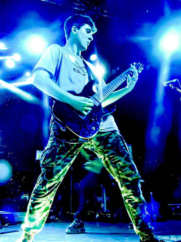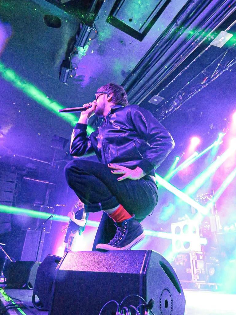 Luces verdes estroboscópicas, láser y ese sampler tan familiar arrancaba «Sleeps Society» y con ello un desbordante torrente de voces cantando y gritando cada frase. La cosa empezaba con volumen bajito pero a nadie le importaba, la peña había venido a gozar de temas mas que asimilados. Un «Loz» enérgico y llamativo (con gafas de sol, calcetín rojo y sus Chuck Taylor) se tragó el escenario en un solo tema tras unas cuantas carreras, gracias al arropo de su banda superensayada y un público más que sumiso. Siguieron con la disfrutona «Anti-social» con su riff ya más que tatuado en nuestros cerebros. Y qué decir de «You’re all you need», ya himno para algunos, en el que «Loz» llevó al límite su capacidad de screamear, sumado a que no había respiro entre temas, enlazando «The Guilty Party», la tropical y djentera «I’ve Seen It All», a partir de la cual pareció mejorar considerablemente el sonido, más «Eye to Eye» en la que literalmente el suelo de la sala se empezó a mover producto de tal cantidad de saltos. Para rematar una primera parte, ya superado con nota el apartado audiovisual con la tabernera y clásica «Four Falls» Locura absoluta del respetable en este arranque simbiótico y no os voy a negar que sorprendente para mí, ya que no imaginaba esa comunión tan especial entre público y banda.