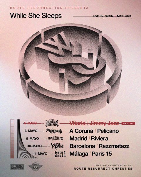 Ya antes de la pandemia asociaba las noches de Champions a grandes conciertos y al paso de grandes giras por los escenarios de la capital. Un sentimiento enfrentado por lo «peligroso» que es un concierto un martes y en horario vespertino, pero esta vez llevaba además el sensor de fear & greed descontrolado. Con este primer click, provocado por el estado de excitación del debut como redactor en la web de REA y sumado al nerviosismo preconcierto de serie + gira esperadísima + primera vez que iba a ver a los británicos, decidí salir raudo, veloz e incluso antes de hora del curro, ya que lo único que tenía claro es que la noche prometía muchísimo y debía evitar llegar tarde para no perderme a los locales BROTHERS TILL WE DIE, además de ese as, que Route Resurrection guardaba en la manga, de nombre WHILE SHE SLEEPS en su tercera fecha de cinco por España, tras el sold out de Vitoria (junto a THE BROKEN HORIZON ) y la locura desatada en A Coruña (junto a STRIKEBACK). Por fin llegaba el día marcado en el calendario desde el mes de noviembre, cuando se anunció esta gira.