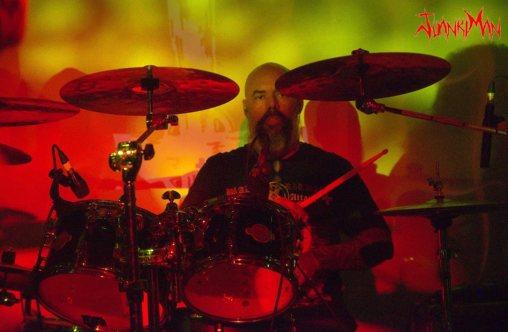 Todos juntos creaban una atmósfera siniestra, satánica, maliciosa, llena de energía, sinceridad, honestidad, generosidad, y comunicación con los parroquianos; aprovechando las paradas “técnicas” para arengar, compartir y bromear con todos. Esto se transmitió y penetró con facilidad y rapidez en la gente que, no tardó en entablar diálogos disparatados y divertidos con los del escenario. Toda una fiesta diabólica que nos emocionó a todos, más cuando al acabar, la presencia de la banda en la sala, su ir y venir, charlando, disponiendo de una sonrisa y un abrazo para todos, los hizo más cercanos aún y más idolatrados.
