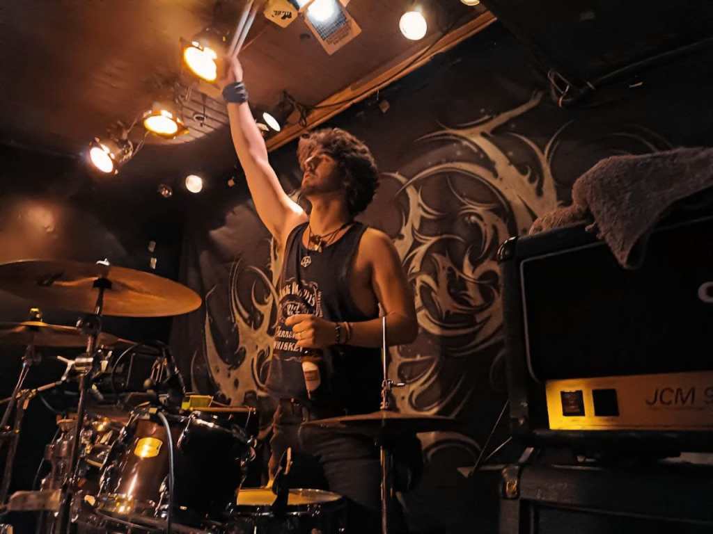 Como ya adelanté, vinieron con ganas de dar un bolazo de ordago, y vaya si lo hicieron… Pocos fueron los momentos en los que Alv paró. Subiéndose al bafle central y animando al publico a coros y pogos de continuo, presentando entre tema y tema a los miembros del grupo, incluyendo a un miembro de reemplazo. Caín a la batería, también conocido por formar parte de Alvak y del cual Alv afirmó se aprendió todos los temas del set en tan solo 2 semanas (¡!). Y la cosa no se quedó ahi, no. Más muestras del nivel de entrega incluyen bajar a cantar entre el público buscando fans que coreasen con él, contar chistes entre tema y tema (llegando a decir de «Devouring Entrails» que podría traducírse como «Callos Madrileños»!!!)… Todo un show tan grande como cercano. Ni que decir tiene que el 11º tema preparado para un posible bis, «Sleepless Night», cayó naturalmente para dar cierre a un señor bolazo que se me hizó increiblemente corto de lo intenso que fué.
