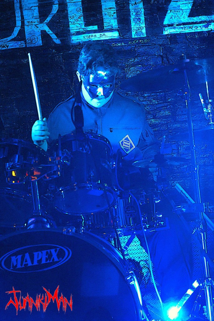Arrancaban con su tema homónimo y una oscuridad característica en sus puestas en escena. Rota tan solo por leds de colores que se reflejan en las metálicas máscaras, creando ese cuadro desasosegante que caracteriza al género. La indumentaria; monos negros, con algún detalle como el logo de la banda en blanco; se confunde en muchas fases de la actuación con el fondo, unas veces monocromático y otras rebosante de colores. Son los instrumentos, con su capacidad de cambiar de color en función de la luz y las caretas pulidas las que delatan la posición de los mismos, cambiando de color con el ritmo de la iluminación.