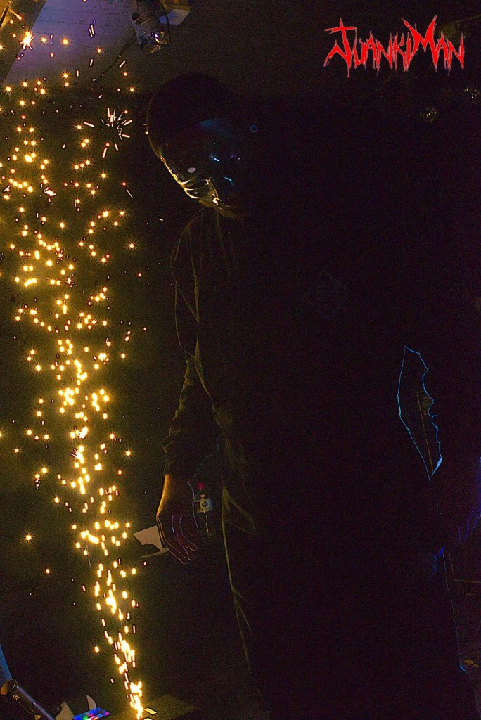 No son sólo luces lo que rompe el negro general que envuelve el escenario. Chorros de chispas frías explotan en dirección al techo del local, mientras la banda interpreta su repertorio, captando la atención de los más despistados, burbujas jabonosas ponen el punto simpático y capturan a buena parte de la parroquia y es que aunque haya muchos metaleros en la sala, no lo dudéis, como he recitado ya en alguna ocasión “tendremos corazón de metal, pero tenemos corazón”. De hecho y a la postre, fue uno de los efectos que más gustaron… ¡Rammstein, tomad nota!