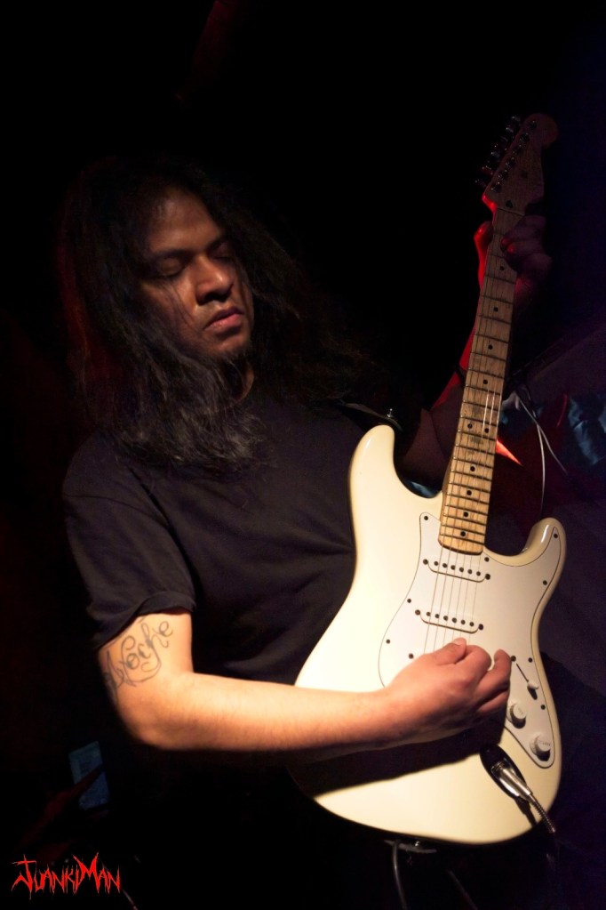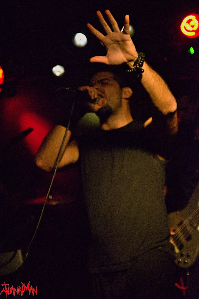 Y eso fue solo el comienzo. El set en si sufrió numerosos cortes y arreglos en comparación con las versiones completas de sus temas. En parte adrede por hacerlo mas ameno pero, más peso tuvo el hecho de que no contaban con todo el tiempo necesario para explayarse en su totalidad. Una vez más, el sonido se solapó por momentos durante la descarga del repertorio, Jacobo llegó incluso a reventar una púa durante el mismo… Aún así eso no les paró ni por asomo. Al contrario, de hecho, presentaron todo su arsenal con toda su fuerza y mas allá. Demostrando a pesar de las circunstancias que esto no iba a ser un ensayo o un mero calentamiento de cara al día siguiente que abrirían para los mismísimos Master. Se dejaron el pellejo tema a tema con una intensidad increíble.