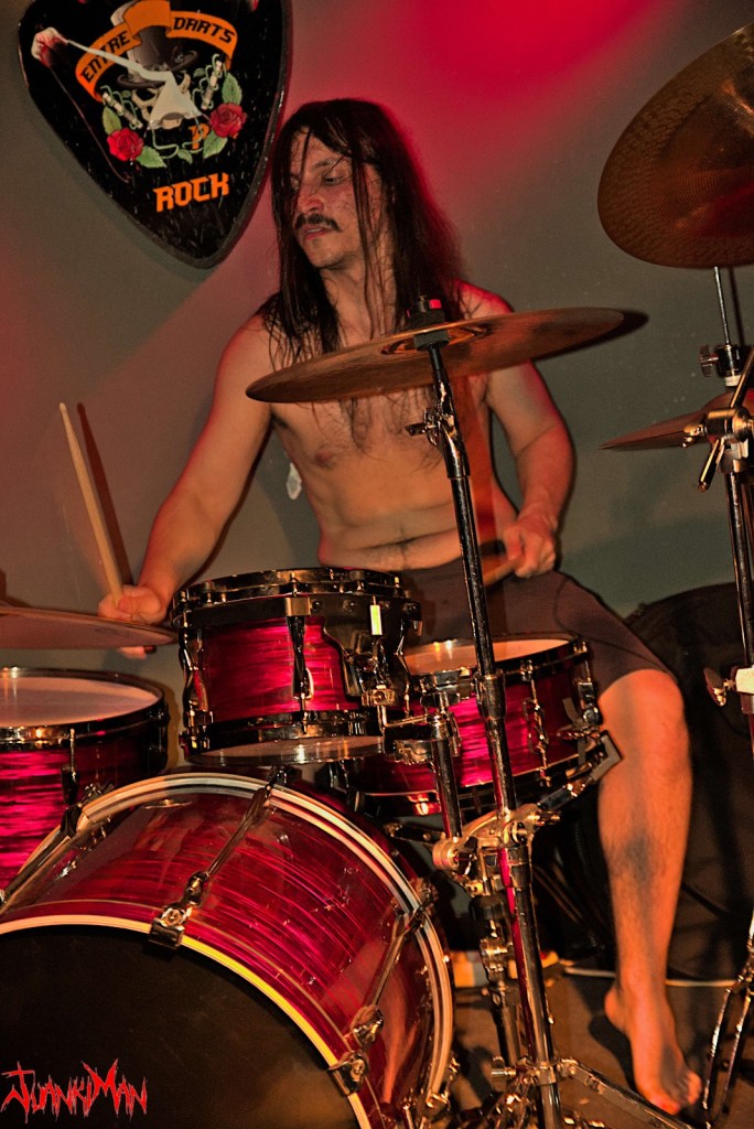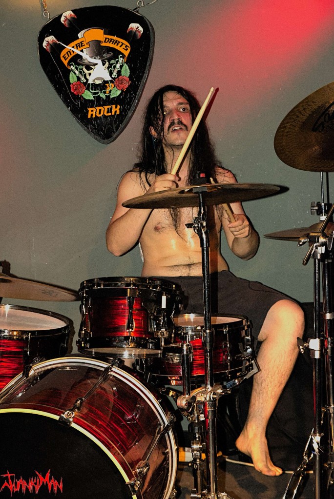 El día de por sí fue complicado de entrada por el hecho de ser una noche tan copada, pero adalides del destino intentaron que Dioivo tuviese que jugar en dificultad en la Entre Darts Rock. Para empezar tuvieron que ir de “rock stars” (¡palabras literales de Jacobo, no mías! Jejeje) al tener que tirar de equipo prestado en lugar del suyo propio. Eso significa efectivamente que un humilde servidor no tuvo oportunidad de ver las buenas artes de Jacobo con su hacha de doble mástil, usando uno de los mismos para la parte melódica y otro para las bases rítmicas (¿…Quien no mataría por ver eso en vivo!?).