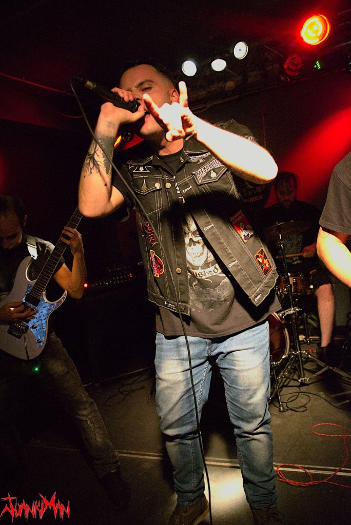 Para el final de la noche entró a escena SouthGate, banda que mezcla Heavy con Groove Metal en su hacer. Formada por Diego Chozas poniendo voz, Pablo Yañez y Luis Miguel Rojas en guitarras, Iñaki Pumarega al bajo y Alberto Gil a la batería.  Al poco de comenzar su set, compuesto por una selección de temas que repasaban intensivamente toda su discografía de sendos LP y un EP solitario sacado durante la pandemia, el sonido se me hizo tremendamente familiar …demasiado de hecho. Tras un par de comentarios quedó claro lo que pasaba, el parecido con Metallica (la epoca del “Load” para ser mas precisos) era tal que tiraba de espaldas.