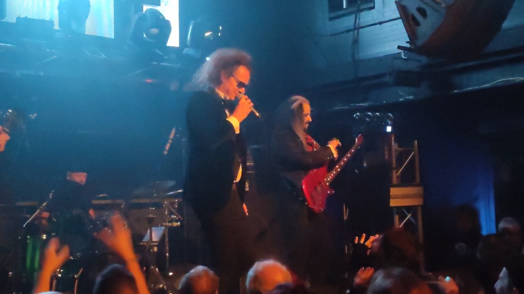 Unos minutos después de finalizar I Am the Shadow, salieron del ataúd para repasar con extraordinaria exactitud varios de los éxitos más aclamados de la banda, un set list bien balanceado, con sus momentos más rockeros intercalados por alguna balada, siempre envueltos en una densa neblina y con pocas luces en el escenario, lo que sumado a las oscuras gafas de De Gray hicieron que este acabará cayendo sobre la batería igual que Christopher Lee lo hacía sobre las posaderas rumanas en las películas de la Hammer. Un accidente del que De Gray salió con gran humor, como no puede ser menos en un caballero tan refinado y elegante como él, con una voz ya algo cascada pero muy emotiva y apasionada, eminentemente bella, coronada por una pajarita en el cuello, toda una declaración de intenciones sobre la puesta en escena, una fiesta de etiqueta para todo gourmet gótico que se precie.