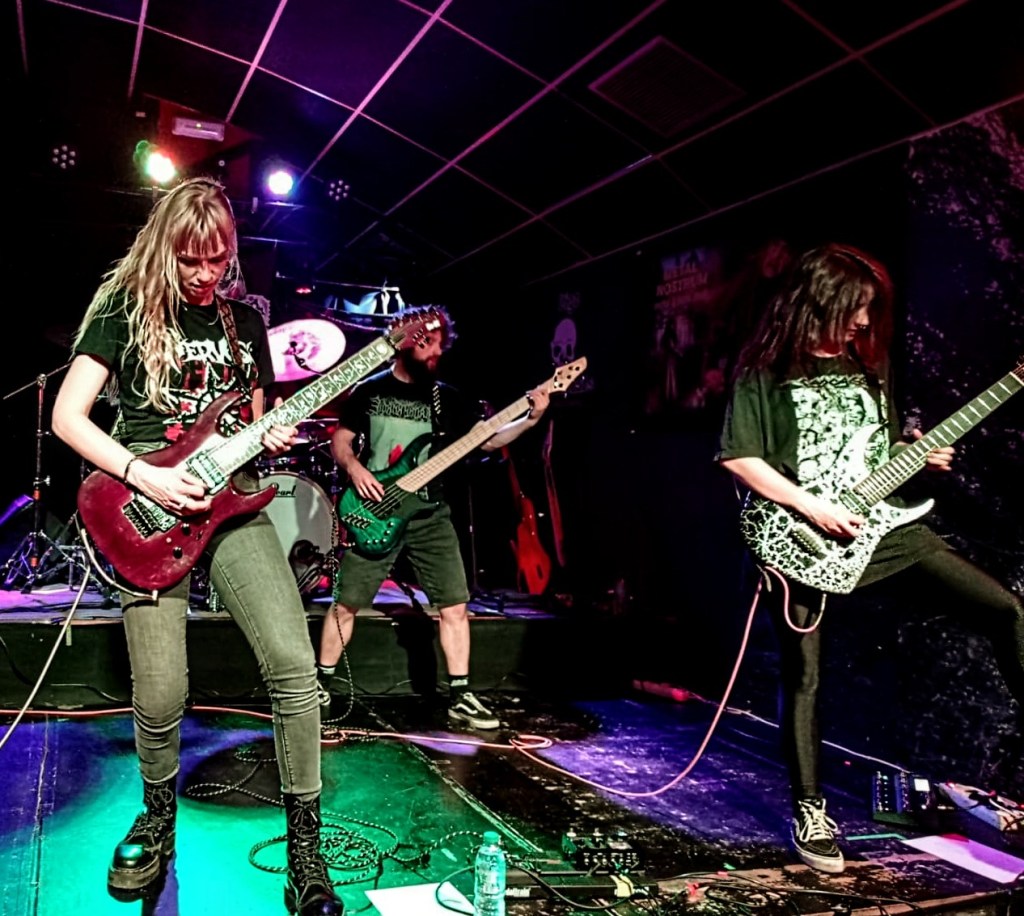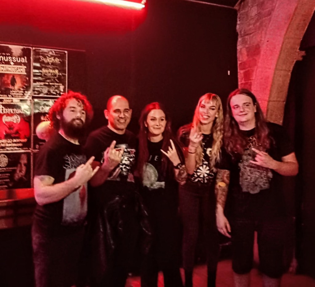 Segunda cosa que llama mi atención. Son unos niños. Unos putos millenials. Pero la madre que me parió, como pueden tocar así de bien estos chavales. Terminado el concierto les preguntaría sus edades.«Drummer is the youngest. He is 24. The rest 28» Tercera cosa que me llamó la atención. Con sus edades tocaban Death Metal Old School. Nada de parafernalias de pregrabados. Nada de maquillaje. Su puesta en escena era su música. Cuarta cosa que me llamó la atención: lo fácil y bien engranados que estaban los solos en la lead guitar. Los hacía con la suerte y la sencillez de una persona que probablemente ha mamado música desde muy pequeña.
