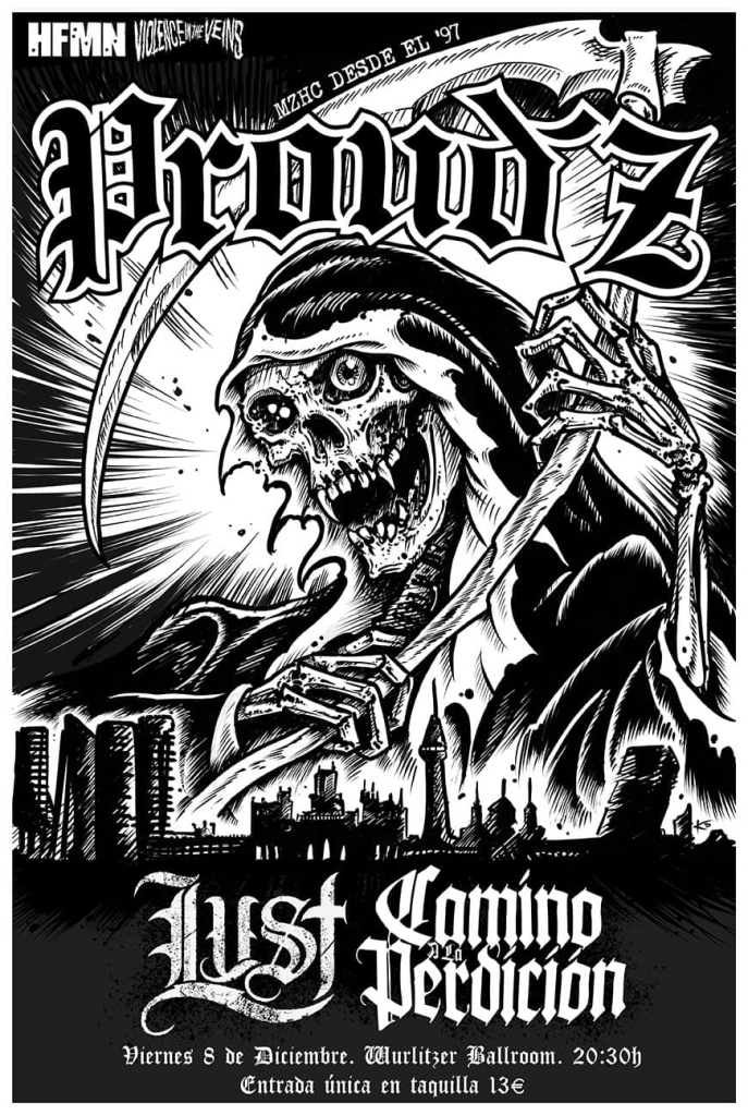 Proudz es una banda de Hardcore de Madrid. comenzamos en el año 1997 y, aunque hemos tenido intervalos de tiempo en los que no hemos estado activos, ahora mismo creo que tenemos una formación sólida y con ganas de hacer cosas. Practicamos un Hardcore con influencias de Metal y Punk. Con letras a veces oscuras y deprimentes y otras veces que empoderan y tratan de levantarte de la lona. Siempre aspiramos a conectar con el que las escucha.