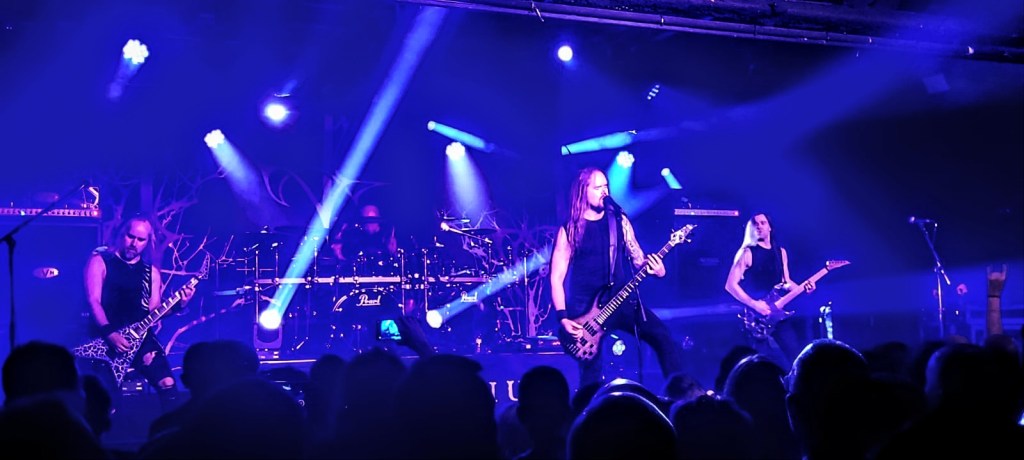 Finalmente, los teclados y otros efectos venían pregrabados. Es algo que, como mínimo, diría que no me entusiasma, pero que ya hace años que el público hemos aceptado tácitamente, mientras no se abuse de este recurso a lo Rhapsody. El repertorio deambuló sobre todo por sus últimas entregas discográficas, particularmente en el disco “Anno 1696” que presentan en esta gira, aunque con especial foco también en el destacable “Above the Weeping World” de 2006, del que tocaron tres temas. Muchos echamos de menos algún recuerdo de su clásico moderno “Winter’s Gate” (2016), pero entendemos que quieran mantener su unidad conceptual tocándolo entero o no tocándolo, lo cual dignifica esa obra. Temas como “Pale Morning Star”, “Change of Heart”, “Song of the Dusk” o “While We Sleep” fueron calurosamente acogidos por la parroquia que, para ser lunes, se mostró razonablemente animosa, sobre todo en la parte delantera, donde me situaba.