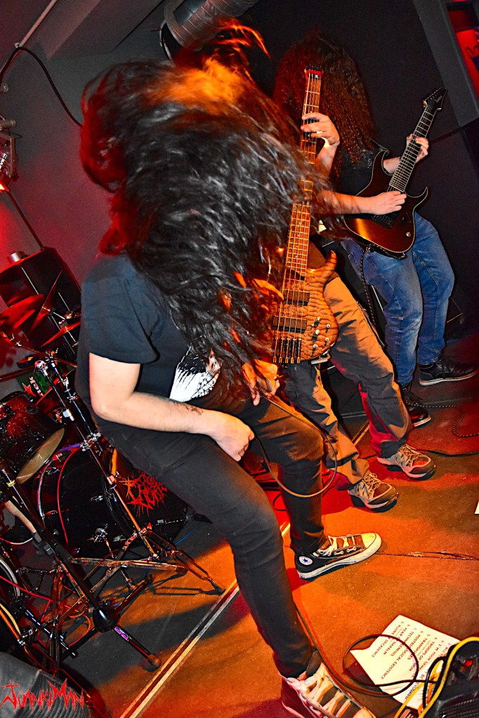 El setlist con el que nos encandilaron esta noche constó de 9 temas. Lo iniciaron, nada más concluir la intro, con el tema homónimo de su EP “All Flesh Must Be Devoured”. No tardó en caer su ya esperado cover de Sepultura, “Troops Of Doom”. Para cerrar con “Fear of Napalm”, otro conocido cover, en este caso de Terrorizer, al que nos tienen habituados y su gran “Ruins of Decadence”. No hubo tiempo para más, aunque el respetable ya caliente quería seguir disfrutando con esta gente encantadora que irradia calidad y simpatía.