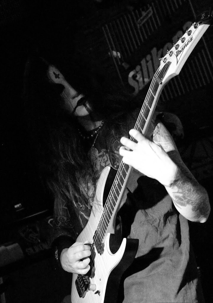 Y hablando de los asistentes, de entrada unos tres cuartos de la sala estaban ya presentes casi desde el mismo comienzo. Un señor llenazo acudiendo a la llamada de la Muerte Regente. La cual nos brindó junto a su ya mencionado EP, no una si no dos covers. “Deathcrush” de Mayhem y “Goatcraft Torment” de Urgehal. Calculada y meticulosamente colocadas entre sus propios “Catar/VI” y “Despectum Mundi”. Otros temas a destacar son “Still Uncorrupted”, que de momento solo suena en los directos de Regent. Y, pillándonos totalmente de sopetón, un pelotazo totalmente inédito para esta gira, “Secular Specular Stoic Dogma”.
