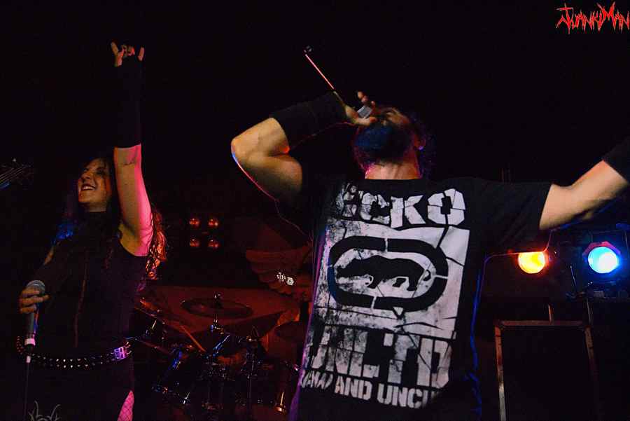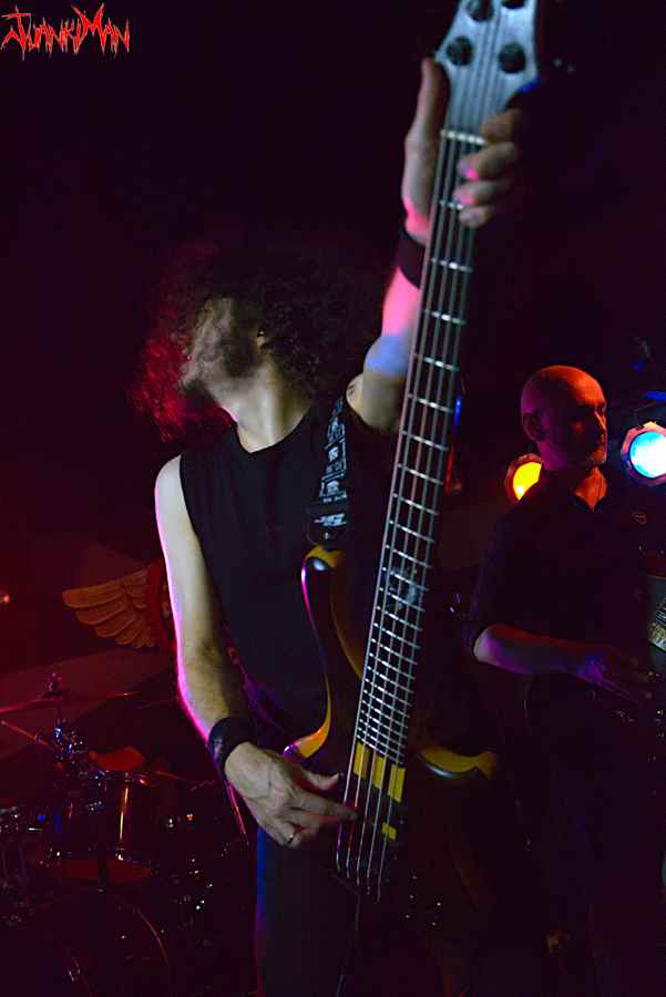 Todo esto acabó quedando en una anécdota, porque todos y cada uno de los integrantes se fueron encontrando y tras “Lost It All” la cosa marchaba ya encauzada. Llegaba “Under my Skin” y comenzaron a gustarse. Las guitarras se turnaban soleando y la batería empujaba con ganas. El bajo, con presencia, completaba el amparo necesario para que la voz alternada entre melódica y gutural hiciera el resto. Prepararon su pequeña performance, algo que nos encanta a los que asistimos a los espectáculos. Es una salsa que devoramos con fruición y verdadero gusto.