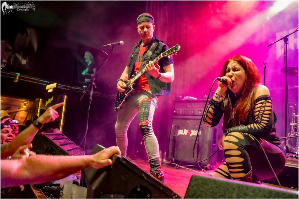 Hasta aquí ya nos hubiéramos quedado satisfechos los asistentes a tan increíble show, pero ellos no nos dejaron de la mano y encendieron la traca final con “Ángel de Papel” dedicada por su letra y comentada por Rebeca hacia la violencia de género, continuó “Reacción” para que Gonzalo se volviera a lucir sacando auténtica pólvora de sus trastes, donde creímos escuchar a los mismísimos Maiden en un momento concreto de la interpretación (si es que no me extraña con tales influencias de la grandeza que transmiten).