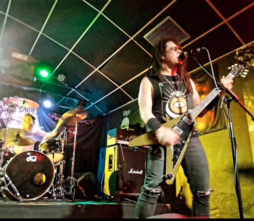 Abrieron UNATHOUSÄND, que rompieron el prejuicio del Unt, “están sonando bastante bien”. Banda de Vigo (no voy a utilizar la palabra “local” porque le veo un tinte peyorativo) me molaron por melódicos y en particular su batería me pareció un hacha. Revisando los vídeos que les hice cada vez me gustan más, sobre todo por las melodías de la guitarra que recuerdan a las primeras tardes de otoño, cuando empiezan las primeras borrascas, el sol deja paso a la lluvia y los días se hacen más cortos (vamos, un poco lo que ha pasado esta Semana Santa en casi toda España, excepto por el cambio de hora ). Muy buena elección como banda de apoyo para abrir a BEWITCHER. Se formaron en 2022 y su disco de estudio, «Wrath and Death on Earth», está en bandcamp. Los que seáis de la zona de las Rías Baixas o vengáis a Galicia en verano, los tenéis abriendo el Kanekas Fest, el viernes 26 de julio.