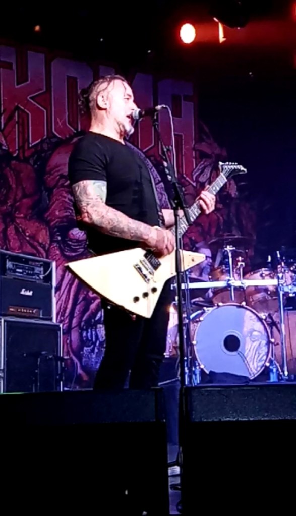 Después de haber recorrido toda la geografía nacional de arriba abajo era el turno de Madrid, con la que sería la última fecha en sala de esta primera tanda de la gira «Una ligera mejoría antes de la muerte tour». Publicaron sunuevo trabajo el pasado 1 de marzo, podéis leer la reseña aquí, y llegaban a La Riviera para ponerla patas arriba. Teníamos hambre de Koma y se notaba. Empezaron en abril a dar guerra por los escenarios y en algunas ciudades como Iruña y Bilbao tocaron 3 días seguidos. Cuando anunciaron la gira en septiembre del año pasado, lo primero que se me pasó por la cabeza fue irme a Iruña a verles y luego repetir en Madrid, hubiese sido la hostia, pero por suerte recapacité. Pues bien, la gira significaba mucho, por lo menos para mí. En 2020 se canceló el concierto, que venía pospuesto de 2019, por coincidir con las elecciones generales, por lo que había muchas ganas. Iba a ser la tercera vez que les veía y, si la memoria no me falla, Koma fue el primer grupo que vi en directo, en la presentación del disco «Criminal» en el Hard Rock Café de Madrid, allá por el ¿2000-2001? Anécdotas aparte, ya era hora de que empezara a subir la temperatura por la capital y fueron los navarros los que nos trajeron este calorcito como aviso de lo que se iba a cocer dentro de La Riviera ese sábado.
