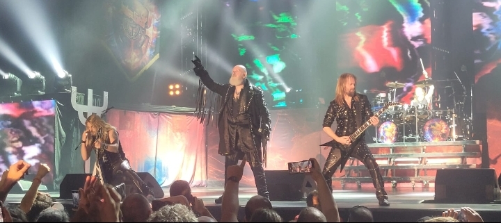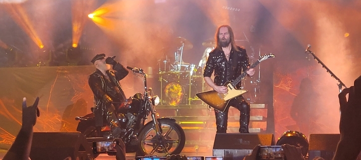 Porque además, en tiempos aciagos para el heavy metal tradicional, este reciente “Invincible Shield” ha vuelto a concitar el entusiasmo general de la parroquia, como ya lo había hecho su precedente “Firepower” (2018). Tras la salida de KK y la triste baja (al menos de los escenarios) de Glenn Tipton, nadie auguraba una última etapa de fertilidad en la banda. Seguramente sea su último baile. Richie Faulkner se ha ganado estos años los galones en un puesto que parecía imposible de llenar. El jueves tanto Richie como los cuatro temas que tocaron del último disco brillaron. Quizás yo habría escogido otra en vez de “Gates of Hell”, pero la ya referida “Crown of Thorns”, la homónima y el single “Panic Attack”, que fue con la que abrieron, estuvieron fantásticas. Además de esto, tiraron de su amplio y variado repertorio para ofrecernos tanto su vertiente más intensa y eléctrica (“Rapid Fire”, “Riding on the Wind”, “Painkiller”, “Electric Eye”…), como su faceta más rockera (“You’ve Got Another Thing Comin’”, “Devil’s Child”, “The Green Manalishi”, “Living After Midnight”…), su vena más glam (“Love Bites”, “Turbo Lover”..) o su lado más clásico y progresivo (“Sinner”, “Victim of Changes”…). Hasta se permitieron rescatar una joya olvidada como “Saints in Hell” del “Stained Class” de 1978. No faltó tampoco el numerito de la Harley y el látigo para “Hell Bent for Leather” ni los coros del público levantando el consabido “Breaking the Law”.