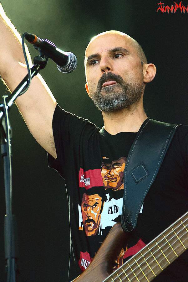 Con temas procedentes de una Demo de 2022, como trabajo más reciente y un larga duración de 2019. INFRAHUMANO lanzaban su apuesta a toda la audiencia del KANEKAS. No sé quién jugaba de banca pero INFRAHUMANO se la llevaron de calle. Un público encantado que ya en muy buen número se apretaba contra las vallas del foso cual horda vikinga contra el foso de un castillo inglés o francés… Vamos, contra el foso de un castillo. No nos perdamos en temas de fronteras. Descarga sin compasión que provoca los primeros bailes de la tarde. Comienzan a percibirse con más protagonismo la presencia de las luces que colorean el escenario. La sombra inclina la balanza frente al sol, refresca y nos olvidamos del tema ese de la “ola de calor”.
