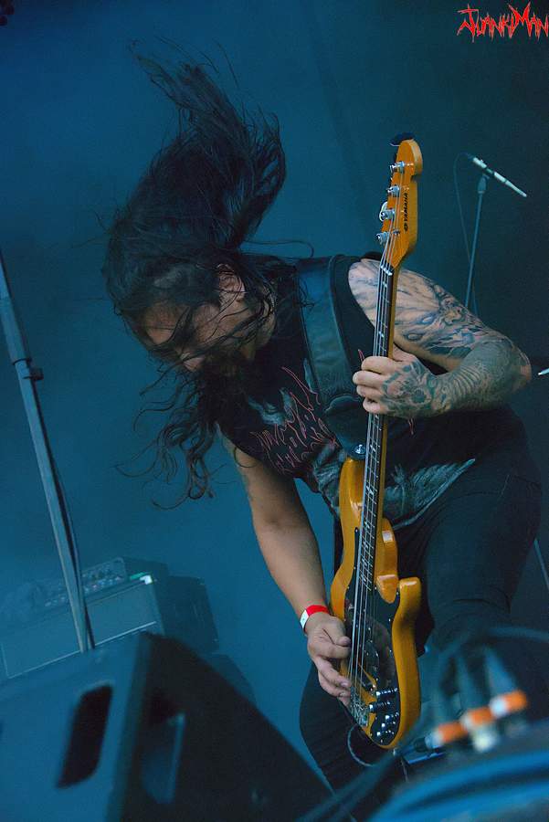 Los “kanekos”, más parados que con HOLYCIDE, asistían a una magnífica demostración. Un sonido enorme, un temario escogido asistíamos, casi impávidos, absortos, entregados a lo que se nos venía del escenario. Momento también para el descanso que con los madrileños no había sido posible. El primer desembarco extranjero fue una horda que dejó un magnífico sabor de boca con una banda renovada y todo el poso de la experiencia y el clasicismo deathmetalero.