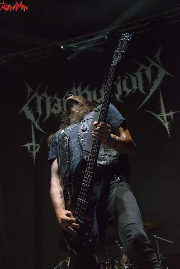 Las luces comenzaron a dibujar chorros de colores, rompiendo la negritud del escenario. La batería ametrallaba desde el fondo; la guitarra sesgaba el aire con unos agudos aterradores; La voz, profunda y lóbrega, bramaba con toda la pasión de un alma tenebrosa; mientras el bajo marcaba, grave, las notas. Todo se detuvo de nuevo. Se reprodujeron los problemas con el sonido del bajo que forzó a Balc, finalmente, a cambiar el instrumento. Esto rompió una vez más el ritmo del concierto. Una lástima que tanto parón no permitiera que MARTHYRIUM cogiera el ritmo debidamente. A pesar de lo cual, mientras pudieron, sonaron fantásticamente bien y consiguieron crear esa atmósfera agónica y aplastante a la que nos tienen acostumbrados.