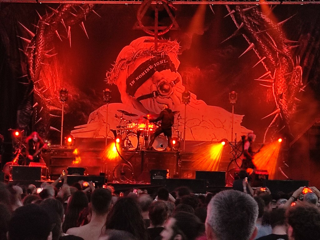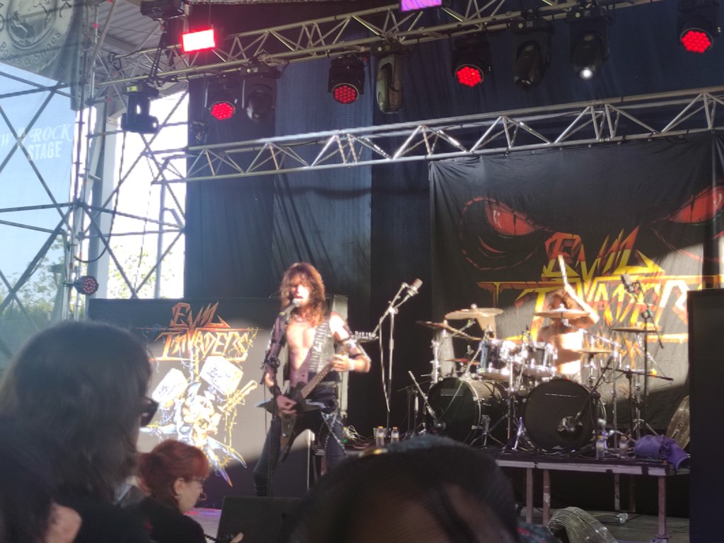 -Uno de ellos es algo que se habló y bastante los días que estuvimos allí disfrutando de los grupos, y es la cantidad de bandas que aparecieron sin un bajista, y es algo que viene ocurriendo bastante, aquí ya fuese por circunstancias que impidieron venir a los músicos a tocar en este festival como por otros motivos fueron bastantes, pongo un par de ejemplos: HAMATOM y EQUILIBRIUM. HAMATOM porque su bajista falleció hace casi un año y de momento no han querido sustituirlo metiendo un guitarra más, a parte de sacar la mascara del miembro fallecido en tamaño gigante recordandle, y EQUILIBRIUM por impedimento de viajar por problemas laborales.