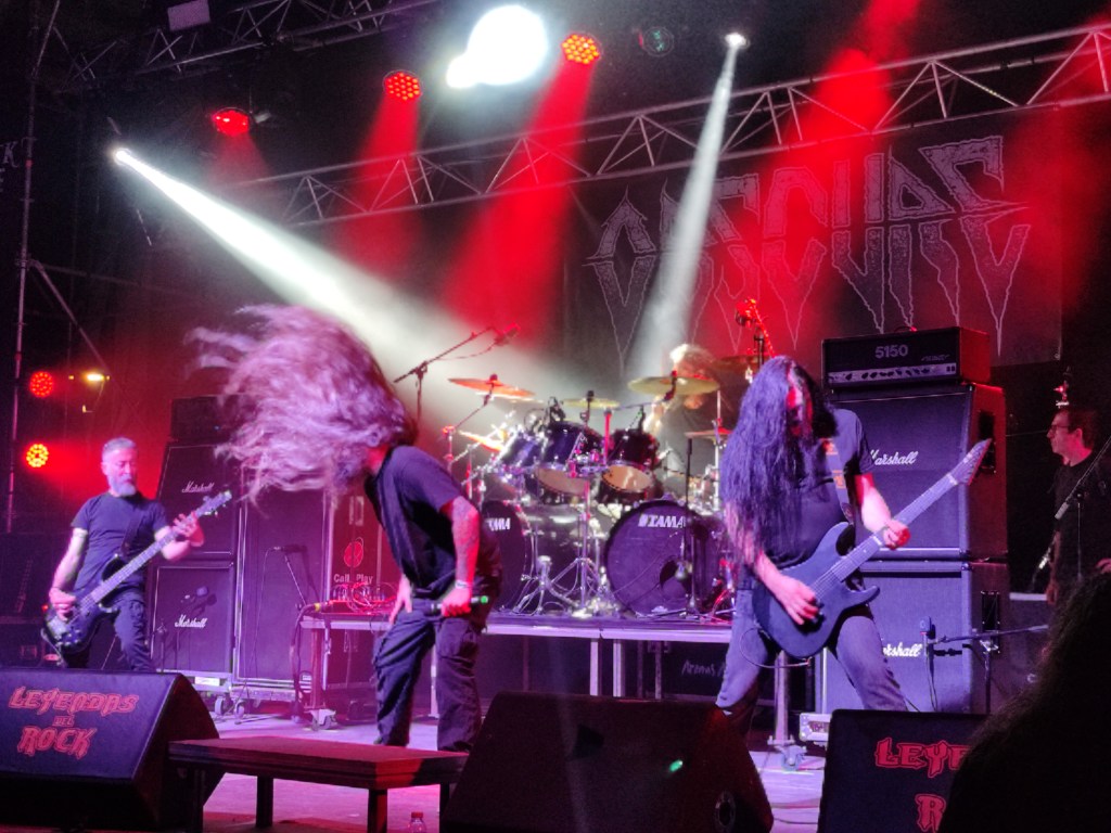 Y llegamos a los que tenía un interés más grande por ver y que intenté no perdermelos. Comenzaremos por los norteamericanos UNTO OTHERS, banda originalmente llamada IDL HANDS hacen un Rock gótico heredero de bandas como los Sisters of mercy, The Cure, The Cult o Love like bloods, puesta en escena muy sobria, habitual en el estilo, con un cantante muy estático y que me sorprendió la cantidad de gente que les conocía, estando la carpa pequeña bastante llena y con un calor de justicia. Contentaron a los congregados con un estilo que no es normal en el Leyendas y que espero abra las puertas a más bandas de este estilo. En las mismas condiciones aparecieron los belgas EVIL INVADERS, tremendo conciertazo se dieron esta banda de speed/thrash, estuvieron muy dinámicos y con un poder arrollador. Aunque no lo vi todo por ver a los finlandeses STRATOVARIUS, me gustaron mucho y son una banda a tener en cuenta en cualquier pequeño festival que se celebre en un futuro en territorio nacional; según gran cantidad de gente de lo mejor del festival. ATROCITY fueron una de las primeras bandas que vi, cumplieron bastante bien, un repertorio muy variado y con un Alex Kull muy activo, teniendo en la carpa pequeña uno de los mejores sonidos del festival. ZARPA no fallaron y aunque el repertorio no fue de los que más me han gustado, se nota que la banda está muy compenetrada, algo que se nota en cada concierto que dan, y joder!!! Vicente Feijoo y Vicente Romero «Hueso» parecen vampiros, los jodios no envejecen. OBSCURE, la banda valenciana precursora del Death/Doom metal estuvieron bastante bien, sonaron potentes y a pesar de tocar en un momento complicado, congregaron a bastante seguidor de los sonidos extremos, no lo vi entero por el horario, pero lo visto, me gustó mucho. De SONATA ARTICA vi la segunda mitad del concierto y me sigue ocurriendo lo mismo de siempre; son una banda que en estudio me flipan sus primeros tres trabajos, el cambio a un estilo más Hardrockero posterior no me hace gracia y en directo, sobre todo el cantante Tony Kakko, me parecen bastante flojos y siempre me han dejado muy indiferente, esta vez ocurrió lo mismo, dejando mucho que desear. Con SARATOGA tristemente no puedo ser objetivo, me agotan, hace años que verlos es algo que supone un pequeño suplicio para mi y a pesar de ser una banda que lo da todo, hay algo en ellos que me hace tenerles cierta alergia, pero como digo, es algo personal. Como banda, actitud en el escenario y su carrera… ningún reproche.
