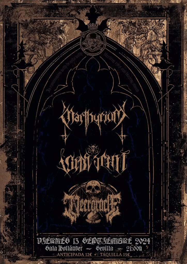 Nos metemos en septiembre y con él la llegada de uno de los conciertos más extremos del año para la ciudad de Sevilla, en el que se podrá presenciar la descarga de tres de las mejores bandas nacionales dentro del Black Metal en la actualidad. Un cartel en el que podremos degustar las propuestas oscuras y malévolas de MARTHYRIUM, VOIDESCENT y NECRORACLE, estandartes, todos ellos, del arte oscuro en territorio nacional, evidenciando, por igual, el alto nivel que por el sur de Europa se crea y mueve.