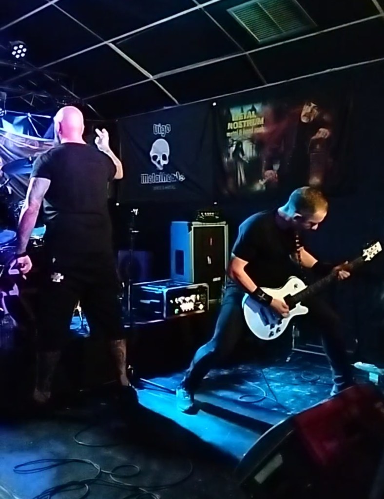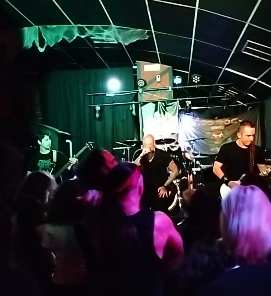 Llegamos, (sí, llegamos, primera persona del plural) cuando Barbarian Prophecies estaban montando su set. Los de Lugo, son una de las bandas de culto de metal extremo en la zona Noroeste de la Península Ibérica. Formados en el año 2000, el respeto que le tienen tanto la parroquia gallega como las bandas a Barbarian Prophecies se lo han ganado en estos 24 años de vida. A Óscar, Alicia, Arnt y a Diego no les hace falta mucha parafernalia para hacer un concierto de categoría. En la sobriedad tocando, en su sencillez, en la cercanía con el personal, y por supuesto su música, está su principal virtud. Ni un pero a BP. Es disfrutar viéndolos…me queda la duda de si esta opinión que tengo respecto a BP, de banda de culto, la tendrá un lector random cualquiera de, no sé, por ejemplo Ontinyent.