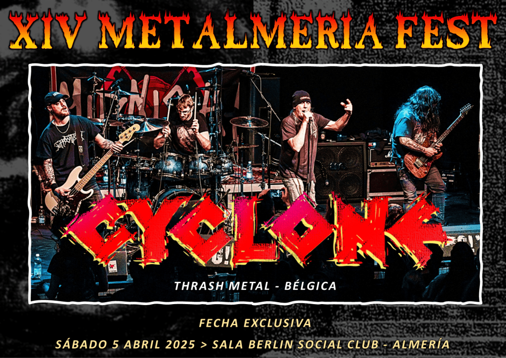 Poder contar con estos maníacos es para muchos de nosotros un sueño hecho realidad!!! Llega desde Belgica esta banda de culto en la escena Thrasher de los ’80, que recorrió Europa de punta a punta en un monton de giras, pero curiosamente fue en el año de su disolución (1992) la primera y única vez que se presentaron en España. Desde su vuelta a la actividad en 2019 Guido Gevels y sus «partners in crime» han desatado auténticas tormentas eléctricas sobre las tablas de salas y festivales de todo el mundo. Es un orgullo para nosotros poder contar con Cyclone para co-encabezar el cartel de la 14º edición del festival. Vendrán a rememorar sus antiguos himnos de batalla en una declaración de guerra sin precedentes! Centrarán su set en su LP de culto “Brutal Destruction” (1986) y su (no menos bueno) sucesor “Inferior to None” (1990).