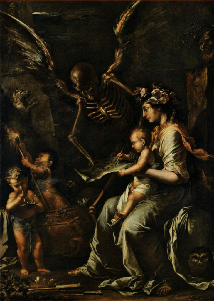 A lo largo del S.XVII, la ciudad italiana de Nápoles vivía una época de esplendor artístico y pictórico que fue sacudida por un episodio de Peste en 1656, liquidando a más de ciento cincuenta mil personas. La escuela barroca napolitana, de las más notorias de Europa del momento se vio terriblemente afectada. De los pocos pintores supervivientes estuvo Salvatore Rosa (1615-1673) que pasó su vida artística a caballo entre Roma y Florencia, por lo que la plaga no lo cogió en Nápoles pero sin embargo, sí que le tocó de manera directa y trágica. La Peste, se llevó por delante a su hijo, a su hermano y a su hermana con sus cinco hijos. El profundo dolor le llevó a pintar el cuadro “La Fragilidad Humana”. En el lienzo, un esqueleto alado dirige la mano de un bebé al que le obliga a escribir: “Conceptio Culpa, Nasci Pena, Labor Vita, Necesse Mori” que viene a ser, “La concepción es un pecado, el nacimiento es dolor, la vida es trabajo, la muerte una necesidad”. Difícil mostrar un mayor pesimismo. La obra, además, está repleta de elementos y recursos, todos ellos símbolos de la fragilidad y la brevedad de la existencia. A modo de analogia, Ad Arma nos presenta este cartel, convocando a las armas para el próximo 19 de octubre (fecha por otro lado que coincide con el ilusionante REA METAL LIVE! en Madrid), a nueve bandas tanto nacionales como internacionales, nueve embajadores del negro arte, portadores de estandartes de la negra luz que serán los responsables de ofrecernos una experiencia única y memorable pero también, cuando todo acabe, de recordarnos a todos los allí presentes, como el lienzo de Salvatore Rosa, nuestro memento mori, que nada es para siempre y que esta tercera edición supondrá el punto y final a la corta existencia de este oscuro y arcano ritual celebrado en la Fortalesa d’Hostalric.