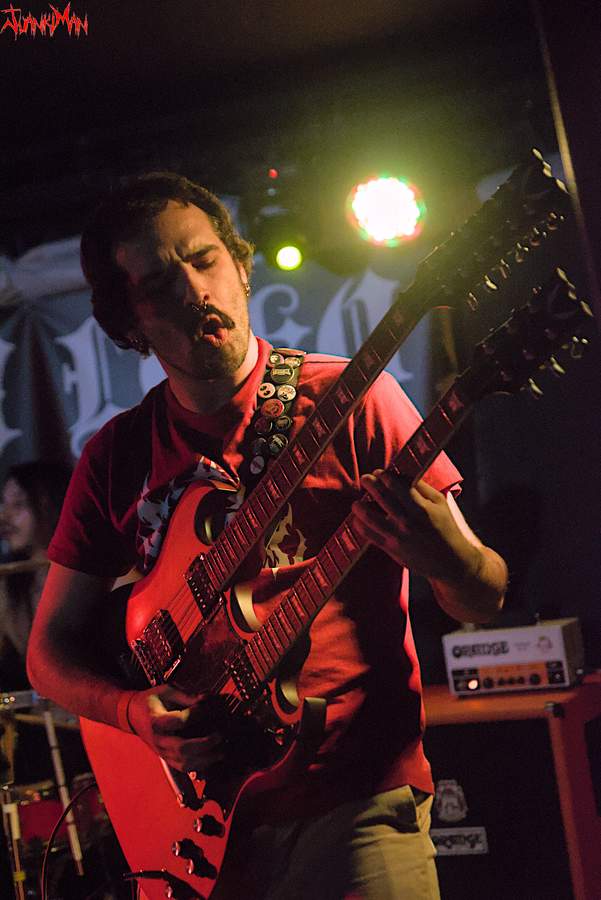 En un momento, Jacobo desenfundó y empuñó su arma, forjada por los Galadhrim que habitan la factoría Dean. Y su doble hoja brilló al caer los focos de La Trinchera sobre la misma. Si, la Andúril personal de DIOIVO, la “Dean Gran Sport Double Neck” de doble mástil. Presagio de la feroz batalla que iba a desatarse en breves momentos. Y es que no hay otra manera de describirlo, no. El viernes 18 DIOIVO sonó como una fuerza de la naturaleza desatada. Una crudeza, una vivacidad tremenda, sin perder en el camino la belleza y complejidad de las composiciones de Jacobo y Dani. Funcionando a la perfección como siempre hacen gala.