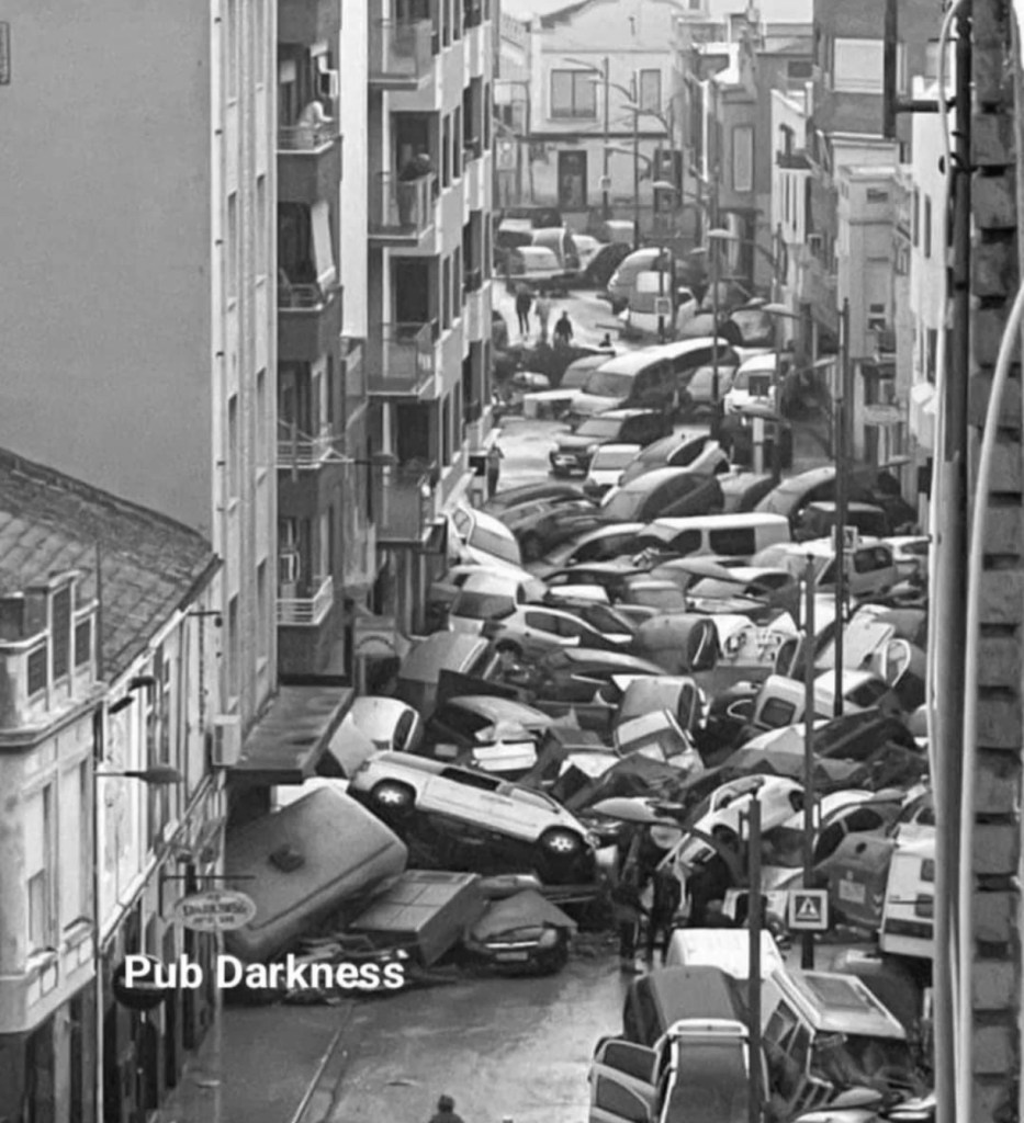 CEREBRAL VORTEX: Empiezo por el final. Gran involucración de las asociaciones y gente de nuestro rollo en particular y del ciudadano de a pie en particular. Desgraciadamente no podemos decir lo mismo de otras instituciones. Respecto a algún caso impactante… pues el de la sala Darkness en Valencia, en el barrio de Sedaví. Ha quedado destrozada..nos atendieron muy bien..gente currante… flipé porque me mandaron una foto llena de vehículos amontonados y de repente me fijé en el cartel de la sala…en fin.
