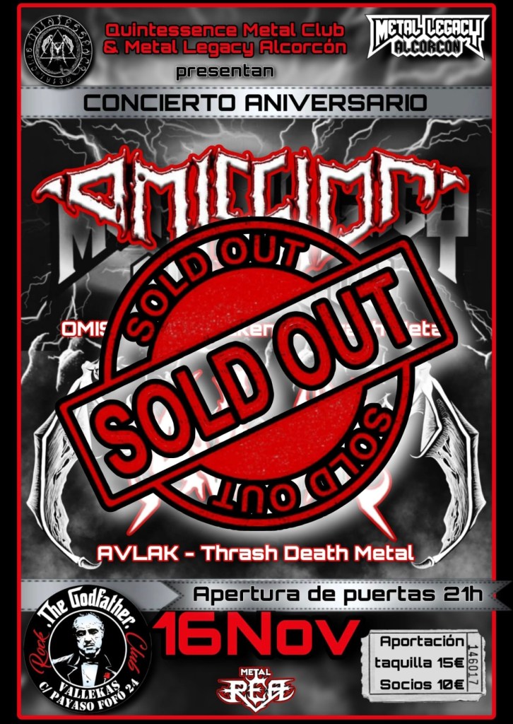 21H30. Sello al dorso de la mano. Vamos para dentro. Quintessence Metal Club y Metal Legacy Alcorcón presentan su concierto aniversario. Todas las entradas vendidas. Un llenazo. Los grupos: AVLAK, thrash y death; y OMISSION, blackened thrash metal. Yo… ya me jode… pero ni **** idea de que grupos son ni qué implican ya esas categorías. ¿Debería haber estudiado? Seguramente… Pero la verdad es que me apetecía dejarme sorprender. Y vaya si me sorprendieron…