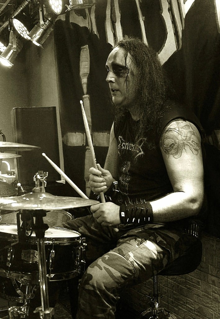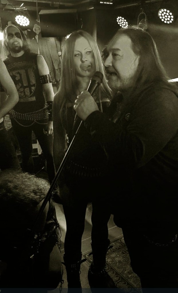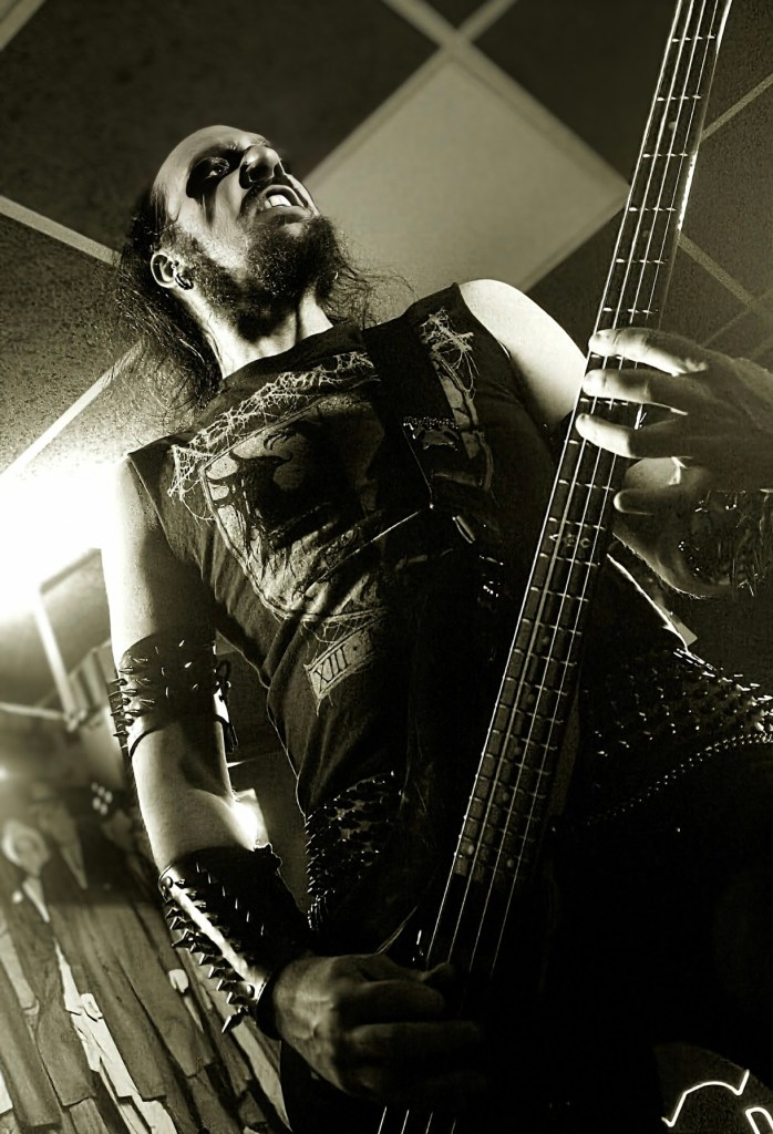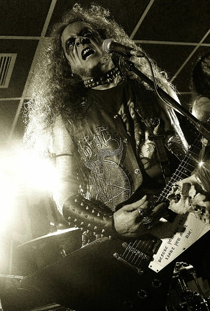 El paseo por Vallecas hacia el local me recordó viejos tiempos de largas pateadas por Madrid. Un bocata para coger fuerzas para la sesión y a seguir. Paso perezoso, no había prisa. Dejando atrás el estadio de Vallecas solo tuve que caminar unos últimos metros para llegar a la «The Godfather». Llegaba temprano. Mi colega aún no había llegado. Tráfico en Madrid. Cero novedad. Era algo que no echaba de menos viviendo en mi norteña Galicia. La terraza del bar de al lado ya apuntaba a que la sala estaría a rebosar de criaturas oscuras. Hacía mucho que no veía tanto cuero, pinchos y cinturones de balas reunidos en una misma ubicación. Me tomé una birra tranquilamente mientras esperaba y filosofaba conmigo mismo. La velada se anunciaba extensa. Apertura: 21H00. Conciertos hasta las 00H00. Sesión de DJ hasta las 03H30. Pfff… ¿Estoy viejo para esto? Una semana antes había tanteado después de demasiados años un concierto jevi en sala pequeña. Había sido increíble ver que viejos conocidos seguían tan activos como siempre. Pero esta noche era mucho más larga. Mucho más intensa. Apartando los fantasmas de la duda me apuré la cerveza y volví a la entrada de la sala. Allí estaba ya Mr. Txus Warlock. La persona que acababa de conocer en el curro pocas semanas atrás y que ya me había ofrecido la posibilidad de volver a meterme en el mundo del metal. Black Metal. De cero a cien. Joder… enganchado a tope. No tardó en presentarme a la gente de la organización y a varios de sus colegas. Unas risas más tarde ya me encontraba charlando de viejos y nuevos tiempos. Qué fácil lo pone esta gente para sentirme acogido. Me ponen al día de los fregados en los que andan metidos y los planes que tienen para apoyar y promover con todo su corazón la música que les apasiona. Un placer de conocerlos a todos. De diez.