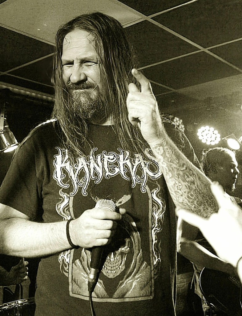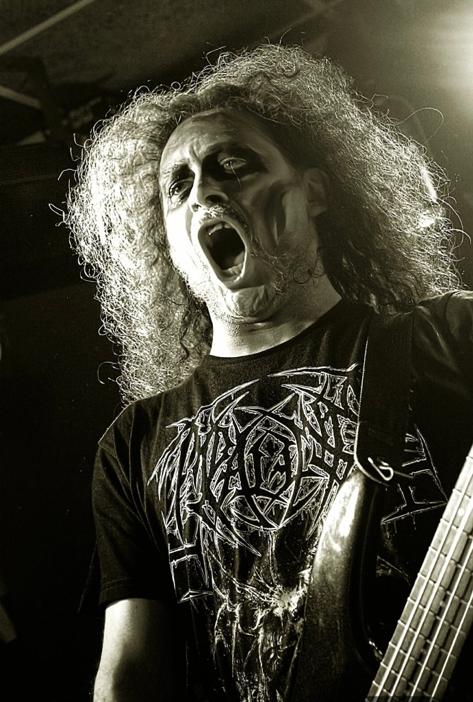 Después de un breve discurso ceremonial y el sorteo perteneciente a la porra Pagan Yule que Quintessence organizó en las semanas previas, llegaba el turno de The Art of Butchery. Mientras los veteranos castellonenses estaban preparando sus afiladas armas de guerra, hubo un pequeño detalle que me dejó a cuadros por la comicidad implícita. Pues, ni corto ni perezoso, ¡Rivas se acercó a nuestro queridísimo Scheitan, preguntándole que si no podría encargarse el de cubrirle en voces! ¡Ni que decir tiene que fue totalmente de broma, como una buena carcajada demostró poco después! De todos modos, por si a alguno de los expectantes que como yo pudiera cazar ese momento al vuelo. Y debido a ello le pudieran entrar las dudas. TAoB arrancó en breves instantes los motores de su brutal maquinaria, con todo un alarde de maestría y brutalidad presente desde el primer segundo de la explosión.