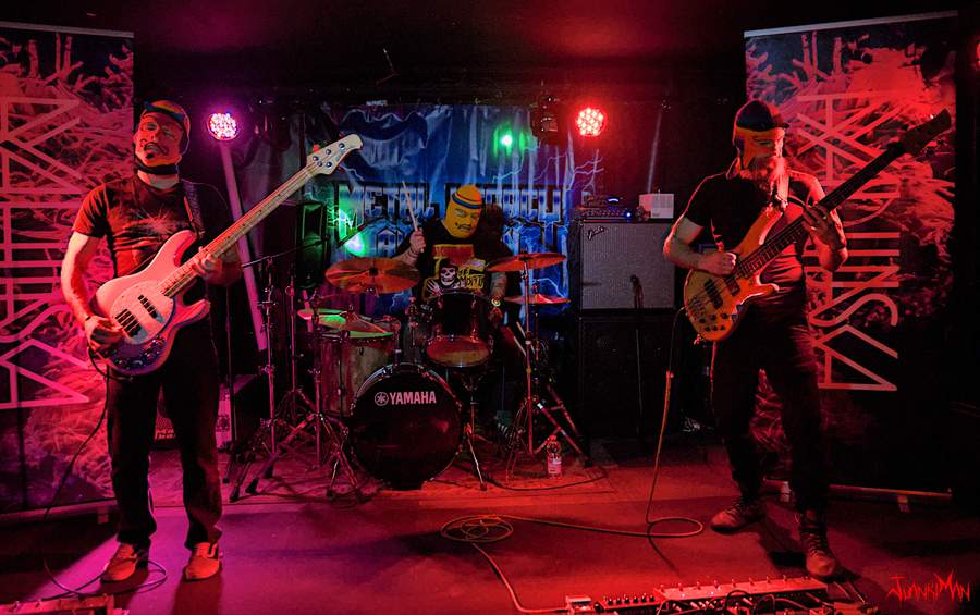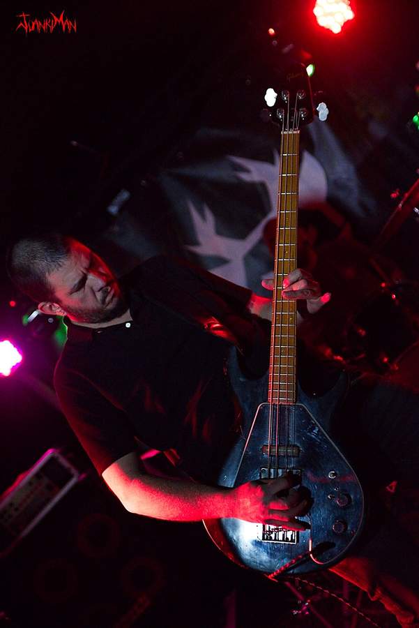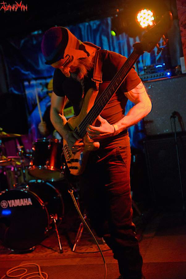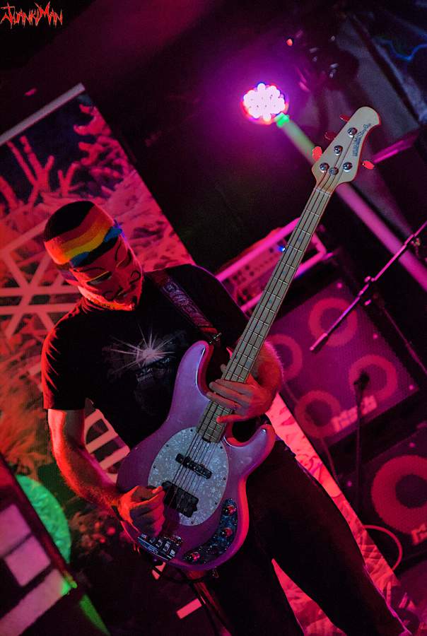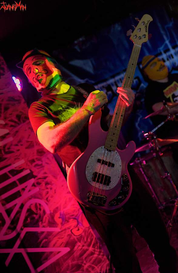 Salta AYAHUASCA pertrechados con sus coloridos pasamontañas. Se ha hecho un poco tarde y aunque el setlist es corto, ya sabemos que los desarrollos de sus temas llevan tiempo, con lo que 7 “cantecitos”, lo de “cantecitos” es un decir, dan para cubrir un set. La formación de AYAHUASCA ha sufrido drásticos cambios de formato. A nadie se le escapa el detalle de que en el escenario hay una batería y dos bajos, nada más. Si bien en sus orígenes contaba con un formato más convencional que se puede apreciar en los cortes de su primer LP. Trabajo homónimo, también conocido por su traducción libre como “La Soga de Los Muertos”, por los más trascendentes y/o versados en la materia.