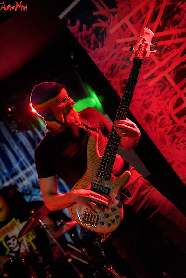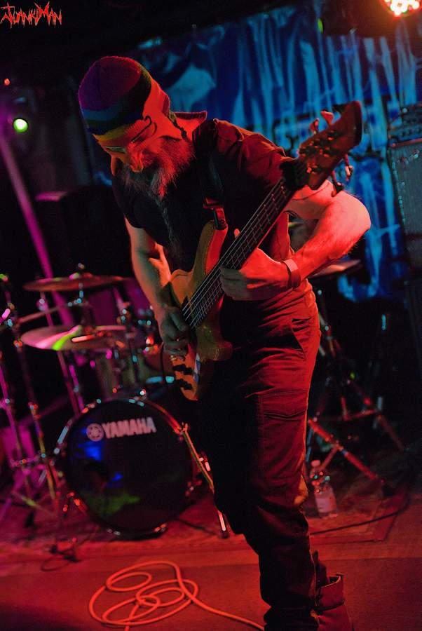 Desde luego, este “mediodía” (madrugada para los trasnochadores), todos los temas van a estar arreglados para bajo y percusión. Y así comienza el espectáculo con “Tiktikyaay”. Un arranque suave, para tomar contacto unos con otros, ellos con nosotros y nosotros con el Universo, despertarse y que el sonido se acople finalmente. ¡Y vaya si lo hizo! Ya durante el mismo “Tiktikyaay” el sonido se acopló. A pesar de lo pesado del mismo y los mandobles que recibían los parches, casi toda frecuencia proyectada quedaba encajada en los márgenes precisos. A lo largo de la actuación, alguna vez se salió algún bajo de madre pero nada excesivamente incordiante y rápidamente atajado.