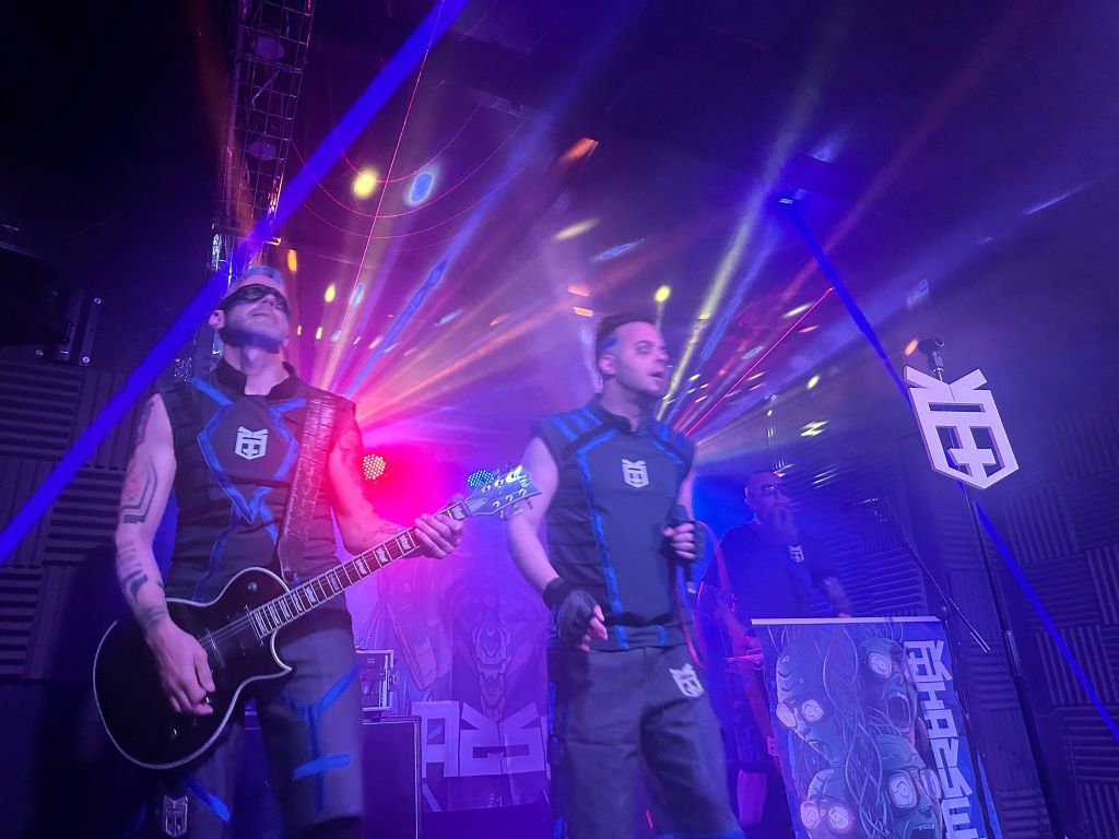 HASSWUT están formados por tres componentes, de los cuáles el guitarra JaviX y Dani el cantante forman parte de MIND DRILLER, dejando a Zuffo como teclista y encargado de todos los efectos, y que está también tras la base rítmica. Su estilo es un Metal industrial donde las guitarras tienen un poco menos de presencia que en MIND DRILLER y donde Zuffo en los efectos es clave, siendo una banda con un ritmo muy bailable y a la vez potente, y que cualquier amante de este estilo musical y seguidor de grupos como Rammstein o Ministry pueden disfrutar por igual con estos personjes; y es que hay que decir que la banda se implica a muerte contando con un público muy entregado dándome la sensación, de que el único que no sabía donde estaba metido era yo.