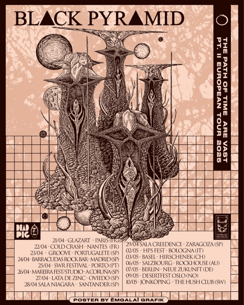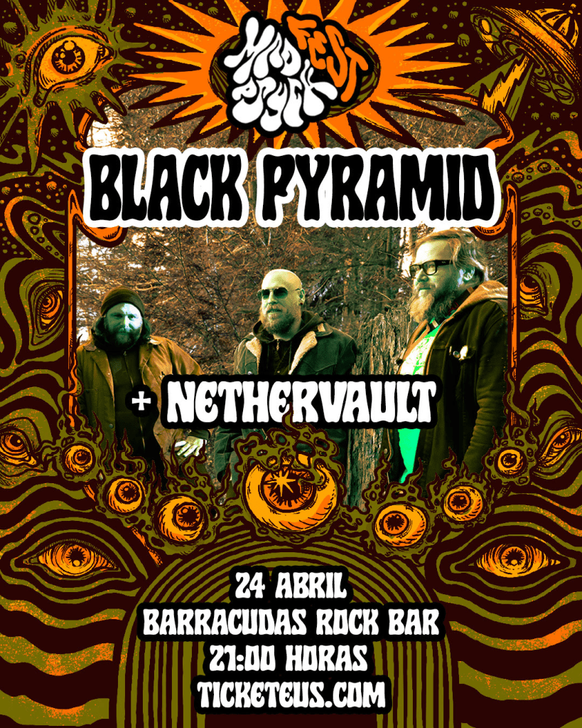 Mad Psych Fest se enorgullece de traer a Black Pyramid, la legendaria banda americana formada en 2007 y compuesta por Andy Beresky, principal compositor, voz y guitarra, Eric Beaudry al bajo, y Andy Kivela a la batería. Fiel al sonido heredero de Black Sabbath, hará las delicias de los seguidores del género y fans de bandas como Sleep, High On Fire, Mastodon, The Sword, Cathedral, Electric Wizard, Kyuss, Elder, etc… Actuarán este jueves 24 de abril en la sala Barracudas de Madrid junto a los locales Nethervault.