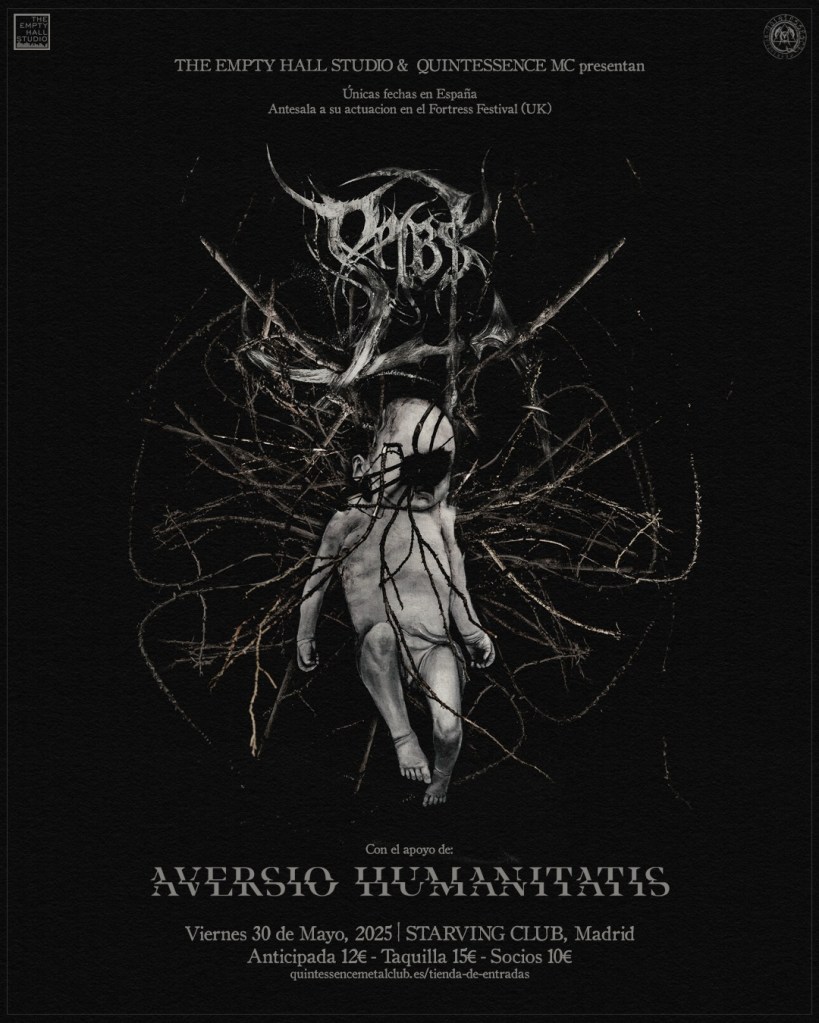 Aunando fuerzas en dicha oscuridad y en preparación del envite veraniego inminente. The Empty Hall Studio y Quintessence Metal Club en estrecha y mutua conspiración nos brindan la visita de un gran nombre tal y como es Selbst, por vez primera en España. Acompañado por los también magnos Aversio Humanitatis el jueves 29 de Mayo en el Pub Utopia en Zaragoza y el viernes 30 de Mayo en la Sala Starving en Madrid. Para así cerrar el ultimo mes antes de la desolación que el estío trae a plena luz del día, el cual obliga a buscar refugio a todos los auténticos seres de oscuridad.