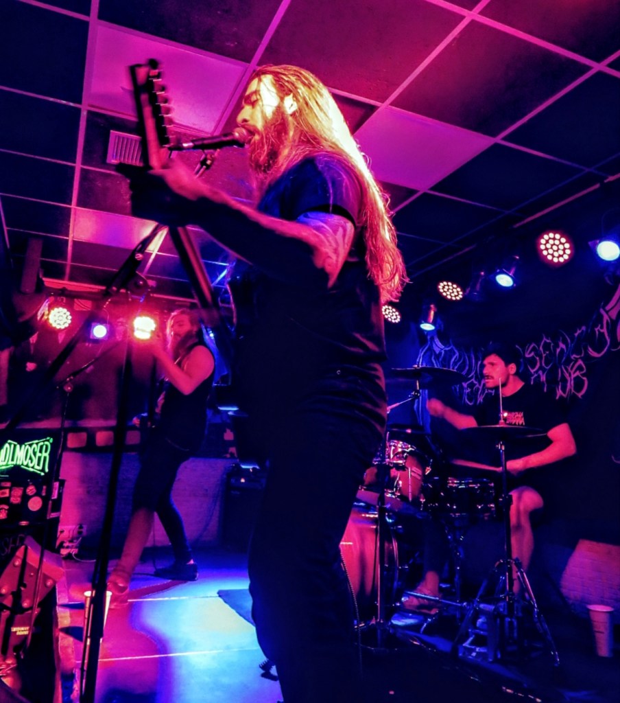 Con esa fuerza y energía titánicas, “Crawling” fue cayendo tema a tema. Siempre bajo la brutal cadencia de Isaías, seguida de las contundentes lineas de bajo de Alejandro y los ritmos desmembradores de César a la guitarra. Siendo la guinda del pastel el combo de voces agudas y graves intercaladas magistralmente de los dos últimos. Las cuales, plasmadas sobre la infinita palestra que tornaba la Sala Godfather. Una vez deshecha toda frontera entre lo terrenal y lo metafísico. Plasmaba una imagen completa de oscuridad, opresión y fiereza abrumadoras. El publico no tardó en absorber dicha energía conviertiendose en uno con ella. Dejándose llevar por el Death de corte moderno con un potente aderezo de Black el cual es estandarte de los malagueños.