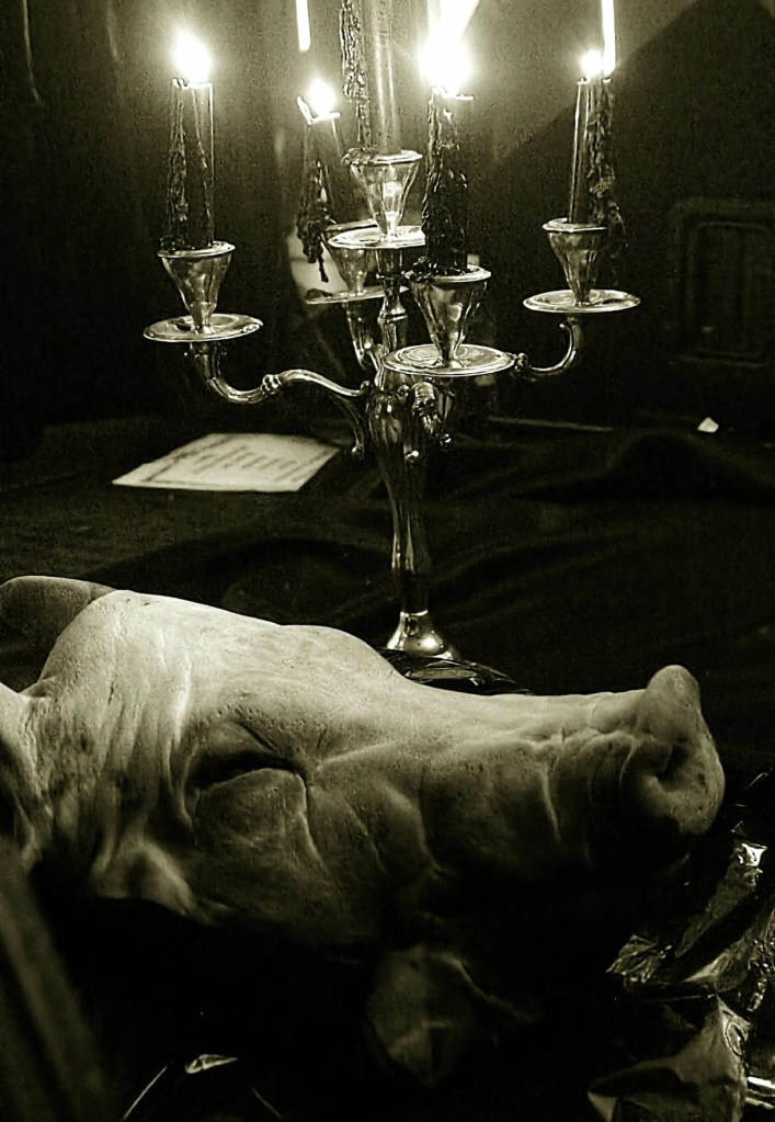 Sin embargo las energías negativas volvieron a hacer acto de presencia, cargando con toda su fuerza contra lo que debería ser un momento apoteósico. O al menos eso es lo que intentó El Fantasma de la Silikona (y no, esta vez no hay entrecomillados, dando pistas sin dar nombres). Haciendo de las suyas pretendiendo empañar tamaña presentación. La excusa vino dada por parte de la decoración, listando en la misma candelabros de velas negras y cabezas de cerdo, para no operar y dejar sin arreglar todo problema posible. Sin embargo, Term0gaunt en conjunto lidiaron contra viento y marea. Resistiendo y persistiendo aún con nada a su favor por momentos. Ante la falta de resolución por parte ajena a ellos, Mortarion lo dejó claro al no-responsable. “No importa, apaga las pantallas. Ya haremos nosotros nuestro trabajo!”. Así prosiguieron en perfecto orden hasta un “Malachite Queen” en el que, rindiendo sentido homenaje a tan magna entidad, prepararon al público como sacrificio en honor de la misma de la mas gustosa manera. Una vez más y, debido a todas las contrariedades sucedidas, 2 temas tuvieron que caerse del listado proyectado inicialmente. Lo que si quedo claro ante todos es que, ante auténticas tempestades contra toda fuerza en contra, Term0gaunt demostró con toda garantía que su crecimiento como banda es exponencial en todo aspecto posible.