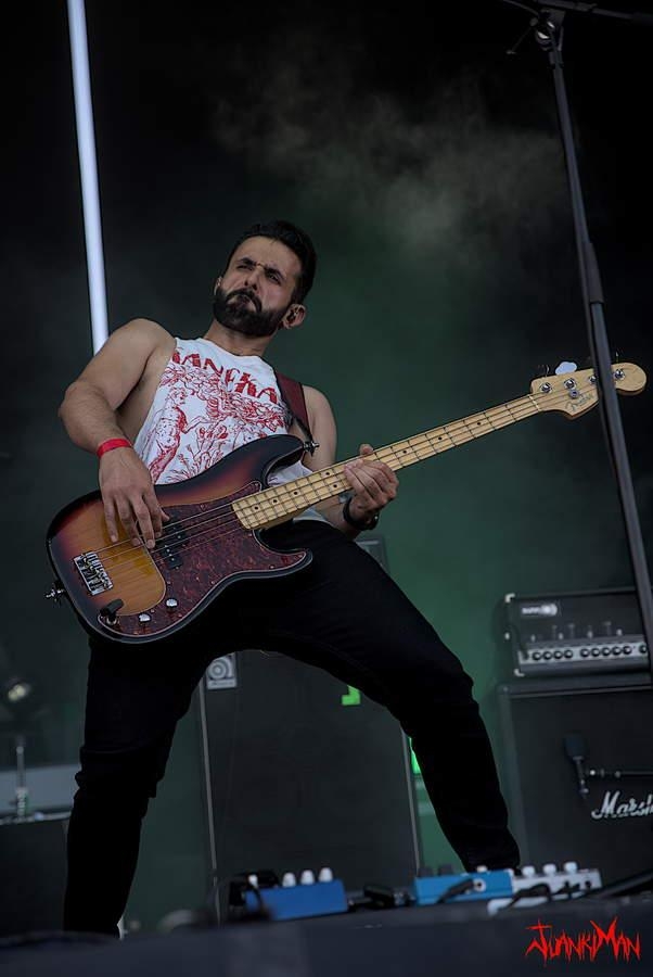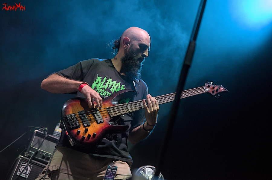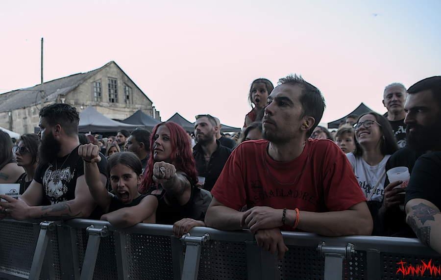 El sol fagocitaba las escasas luces sobre el escenario y tan solo el humo tamizaba el negro del telón de fondo. Con bastante gente ya, apiñados en las franjas de sombra y con una kilométrica cola para conseguir tokens, LUCIFÉRNAGA procede a desentrañar uno a uno los temas de “Mala Bësta”, su reciente primer y exitoso álbum debut, con su forma particular de entender el metal, que difícilmente los posiciona en un único estilo. Muestran un sonido crudo, visceral, denso, potente y pesado. comandados por una voz solista melódica que aligera ese peso que el resto de la banda imprime al resultado final. He de reconocer que no los había visto anteriormente en directo y me sorprendieron positivamente. Buena presencia en el escenario, buena actuación y una jornada que comenzaba de menos a más “caña” auspiciando una noche imborrable del mejor Metal Extremo. A estas horas de la tarde y con el sol abrasando la ría no venía mal la calidad demostrada por LUCIFÉRNAGA y su ritmo con tintes Doom y Stoner, para ir desperezando neuronas.